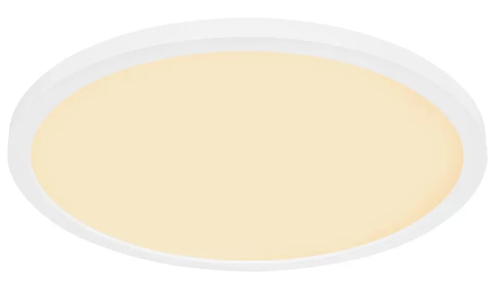Plafonnier plastique blanc, plastique satiné, plastique opale, blanc, Plusieurs intensités à gérer par un interrupteur mural, Rétroéclairage, Fonction de mémoire, IP44, ø: 420mm, H: 25mm, incl. LED 24W 230V, 2700lm Source, 2300lm Output, 3000K