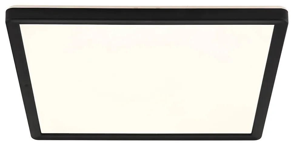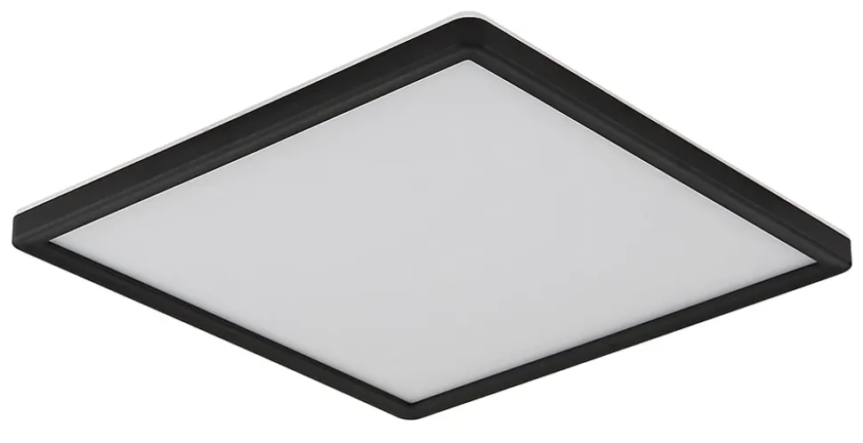 Plafonnier plastique noir, plastique satiné, plastique opale, blanc, Plusieurs intensités à gérer par un interrupteur mural, Rétroéclairage, Fonction de mémoire, IP44, LxPxH: 294x294x25mm, incl. LED 18W 230V, 2100lm Source, 1500lm Output, 3000K