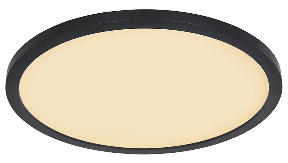Plafonnier plastique noir, plastique satiné, plastique opale, blanc, Plusieurs intensités à gérer par un interrupteur mural, Rétroéclairage, Fonction de mémoire, IP44, ø: 420mm, H: 25mm, incl. LED 24W 230V, 2700lm Source, 2300lm Output, 3000K