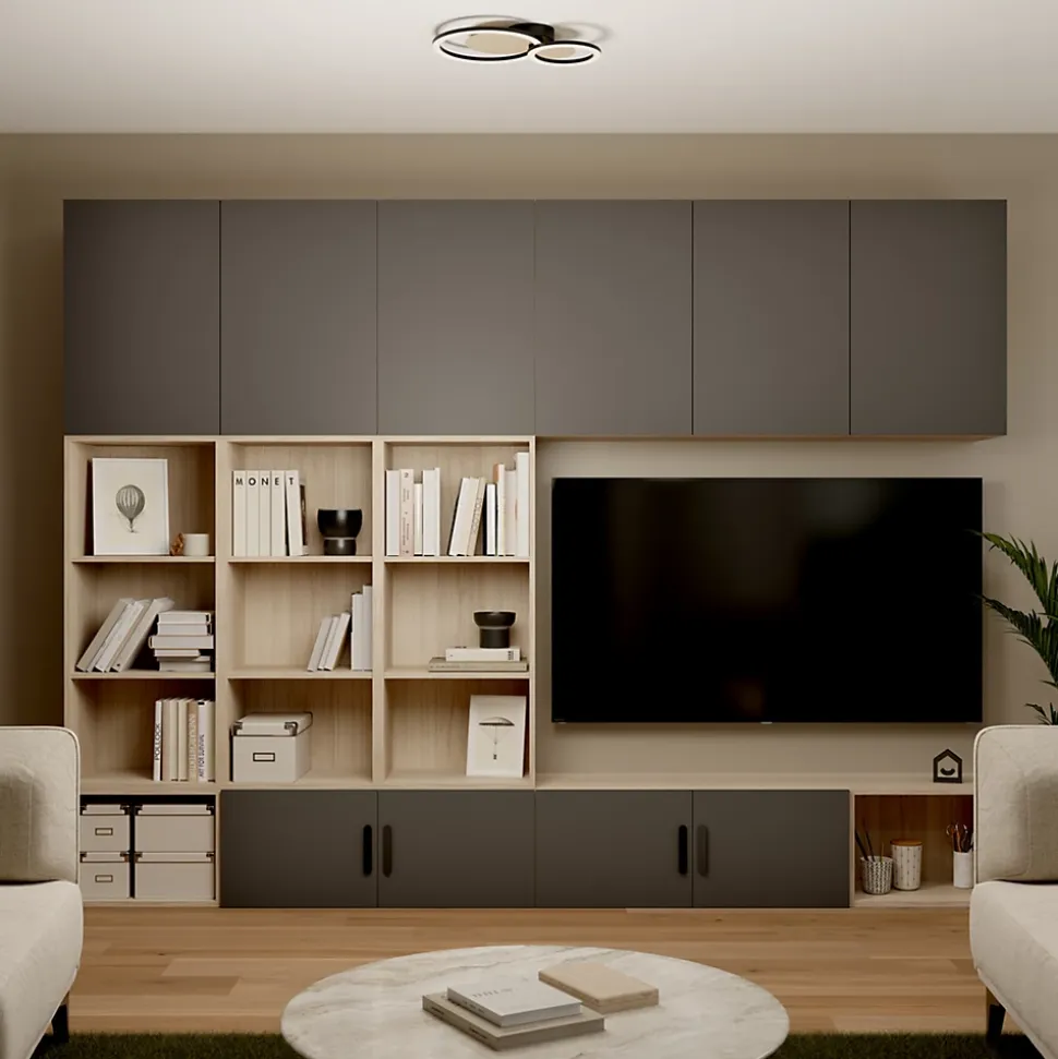 Plafonnier rond LED 2 lampes effet bois et métal noir L.30 x l.45 x H.7cm 12W 1500lm GoodHome Helicona