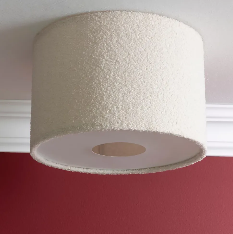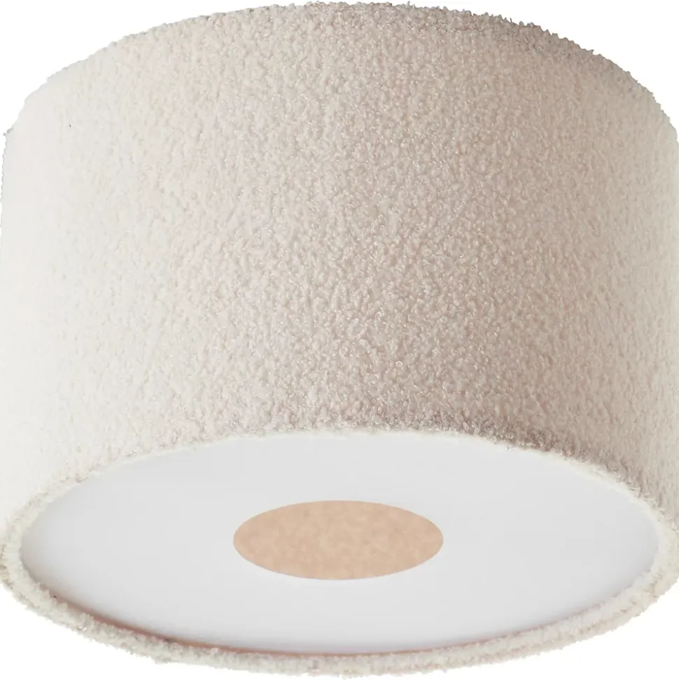Plafonnier rond tissu bouclette Teddy blanc Ø35cm IP20 E27 20W Brilliant