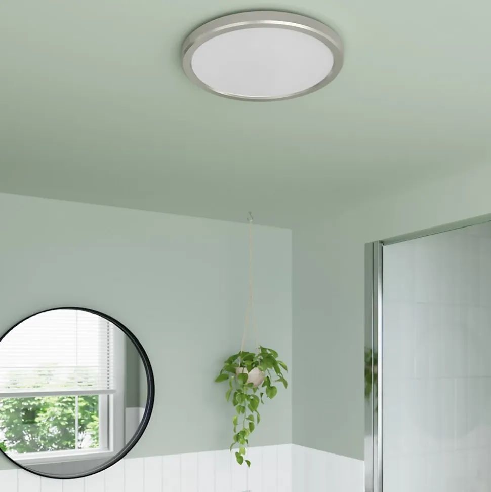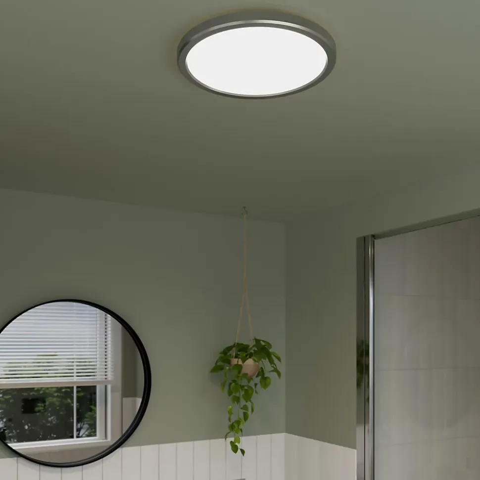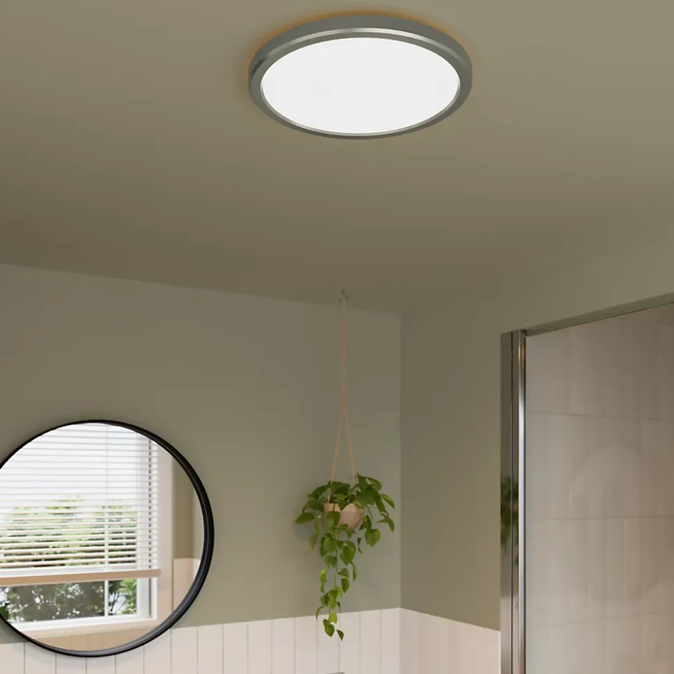 Plafonnier salle de bain gris chromé LED integrée Solidaster blanc chaud, neutre Ø.30cm IP44 1600lm 14.5W GoodHome