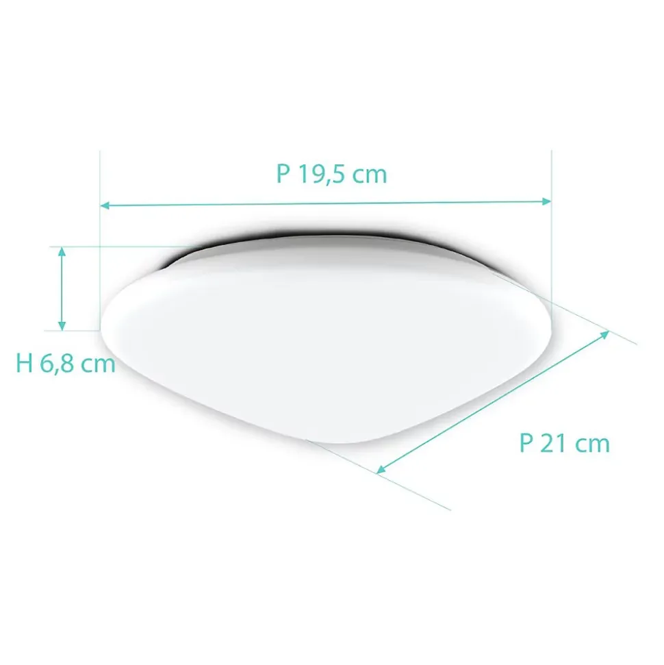 Plafonnier spécial Salle de Bains IP44 (21cm 12W 960 LM 4000K) Blanc – Voltman Le plafonnier SOMA avec son design de poire polie très élégante donnera ne nouvelle dimension à vos salles de bain. Par sa forme « naturelle » il s’adaptera parfaitement autant à un univers chic qu’à une salle de bain équipée avec des éléments fabriqués avec des matériaux bruts. Dimensions du produit (L x l x h) : 22,5 cm x 23 cm x 10 cm Poids : 1,2 Kilogrammes Watt : 12W Batterie(s) / Pile(s) requise(s) : non Type de piles : non Matière : Aluminium Couleur : Blanc Couleur de la lumière : Blanc Kelvins : 4000K Lumens : 960 Etanche : oui Indice de protection IP : IP44 Technologie :