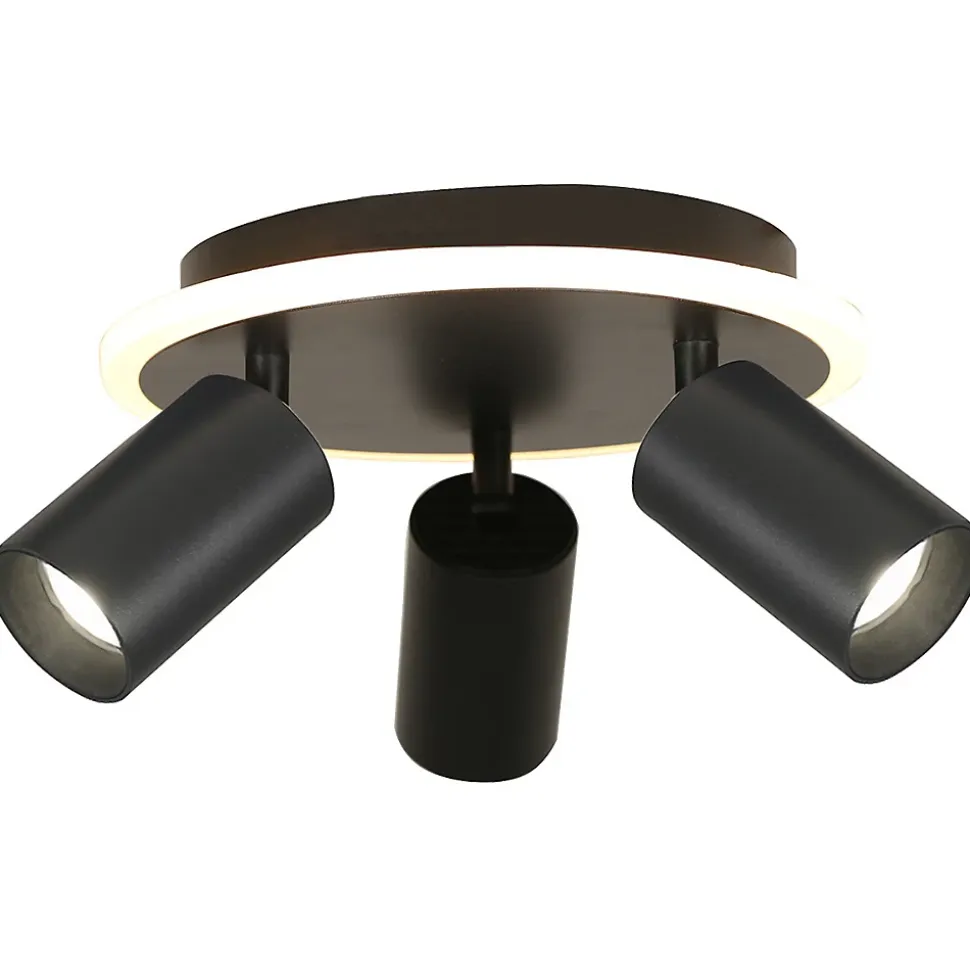 Le plafonnier Parma 3 est un luminaire moderne qui combine design minimaliste et éclairage fonctionnel. Sa finition noire élégante et sa forme ronde en font un choix idéal pour les intérieurs contemporains.Ce plafonnier est équipé de trois spots orientables GU10 qui permettent de diriger la lumière précisément vers les zones importantes de la pièce. Il est ainsi parfait pour éclairer un bureau, un plan de travail, une table ou un coin lecture.En complément des spots, le luminaire dispose également d’un éclairage LED intégré avec température de couleur réglable CCT 3000K – 4000K – 6000K. Cette fonction permet d’adapter l’ambiance lumineuse selon les besoins : lumière chaude pour un moment de détente, lumière neutre pour un éclairage quotidien ou lumière froide pour le travail.Avec son diamètre compact de 24 cm, ce plafonnier est idéal pour les pièces où l’espace est limité. Il convient parfaitement au salon, à la chambre, au couloir ou au bureau.Les anneaux décoratifs interchangeables noir ou doré permettent également de personnaliser le style du luminaire selon la décoration intérieure.