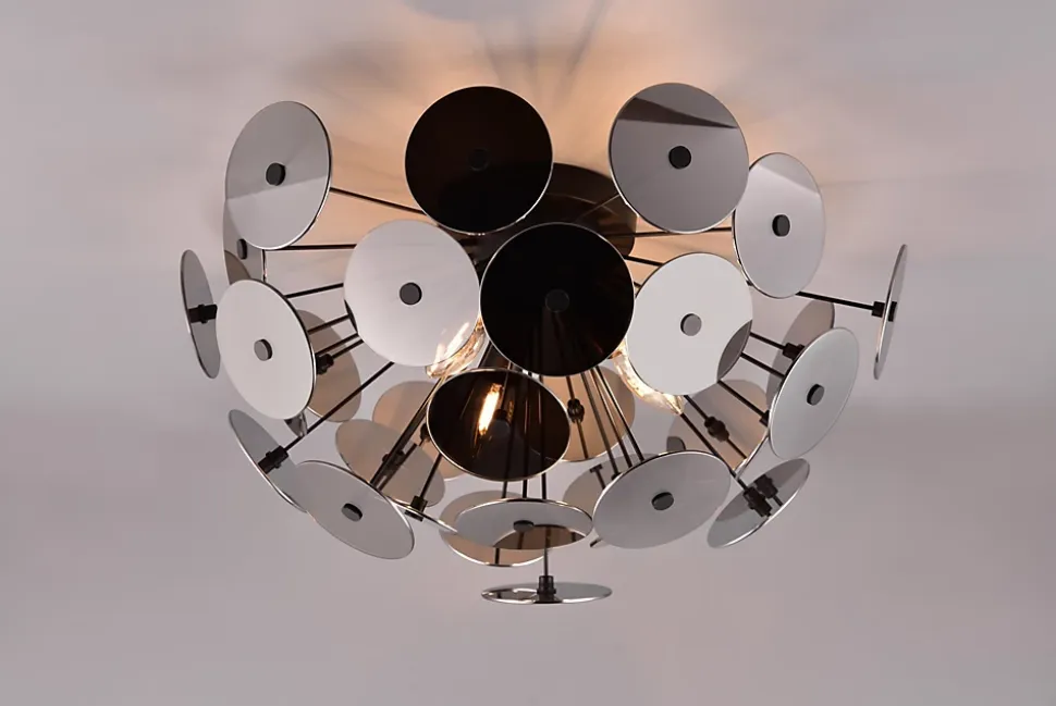Les caractéristiques techniquesTransformez votre intérieur avec le plafonnier Discalgo, un luminaire au design saisissant inspiré par la nature. Avec sa forme évoquant un pissenlit, il crée un magnifique jeu d’ombres et de lumières, idéal pour le salon ou la chambre.Doté d’une structure en métal noir mat et d’abat-jour en verre chromé, ce plafonnier de 54 cm de diamètre et 30 cm de hauteur s’intègre harmonieusement dans des décors modernes et créatifs. Conçu pour trois ampoules E14 (max. 40W, non incluses), il offre un éclairage à la fois élégant et fonctionnel.Pour un rendement optimal et des économies d’énergie allant jusqu’à 80 %, nous recommandons l’utilisation d’ampoules LED.Les avantages esthétiquesLe plafonnier DISCALGO de TRIO séduit par son esthétique originale : les reflets chromés du verre contrastent avec le métal noir pour un résultat à la fois chic et spectaculaire. Son style aérien apporte une touche artistique à n’importe quelle pièce, offrant une lumière diffuse qui sublime vos espaces.Simple à installer au plafond (IP20), ce luminaire est parfait pour ceux qui recherchent un éclairage qui ne passe pas inaperçu tout en restant fonctionnel et durable.