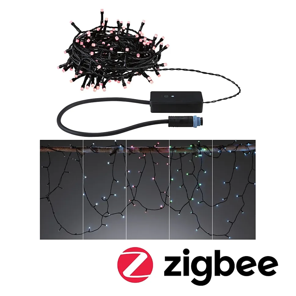 Longueur totale de 10 m|Commande confortable grâce à la technologie Zigbee|Large spectre de couleurs grâce au changement de couleur RGB-Multicolor|IP44 : Protection contre les projections d’eau en extérieur|Guirlandes lumineuses pour un éclairage ornemental additionnel dans le jardin, l’espace assis ou sur la terrasse|À combiner avec tous les accessoires de la série Plug & Shine|Ne pas oublier: commander simultanément le transformateur adapté!