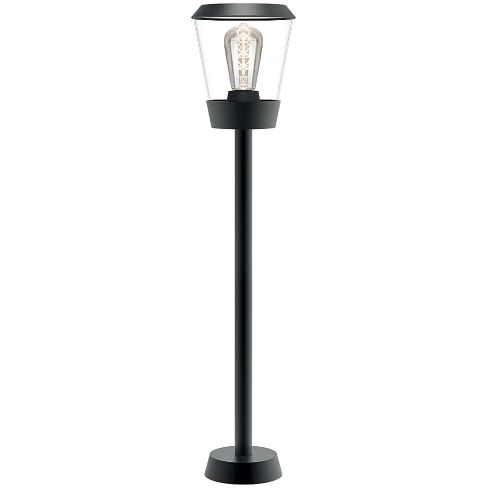 Le potelet extérieur Haut 800mm E27 IP54 convient pour une installation extérieur, pour éclairer une allée, une terrasse ou le jardin par exemple. La qualité des finitions est irréprochable pour ce potelet moderne qui met en valeur l’extérieur de votre habitat tout en sécurisant son accès. Ce potelet extérieur Haut 800mm est munit d’un culot E27. Nous recommandons l’installation d’une ampoule LED E27 à filament, design et contemporaine. En effet l’ampoule visible à travers le diffuseur transparent, contribue au design général du potelet. La finition gris mat apporte une touche sobre et raffinée. La structure est en aluminium et le diffuseur en PC robuste et durable. Ses dimensions sont les suivantes, hauteur 800mm et diamètre 175mm. L’indice de protection IP54 assure que le produit est : Protégé contre les poussières et autres résidus microscopiques Protégé contre les jets d’eau de toutes directions à la lance (buse de 6,3 mm, distance 2,5 à 3 m, débit 12,5 l/min ±5 %). Les produits dotés d’un indice de protection IP54 sont destinés à une installation extérieur. Hauteur : 800mm Diamètre : 175mm Culot : E27 Indice de protection : IP54 Grâce à son rendement énergétique élevé, cette borne possède une classe énergétique A++ à A. Produit conforme à la norme CE, à la directive RoHS et DEEE.
