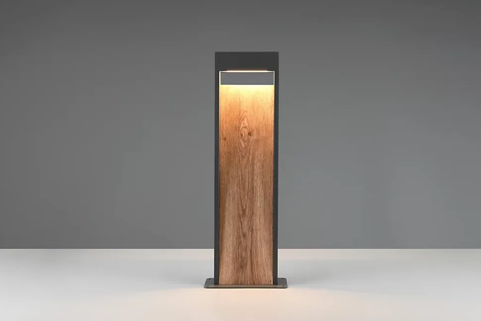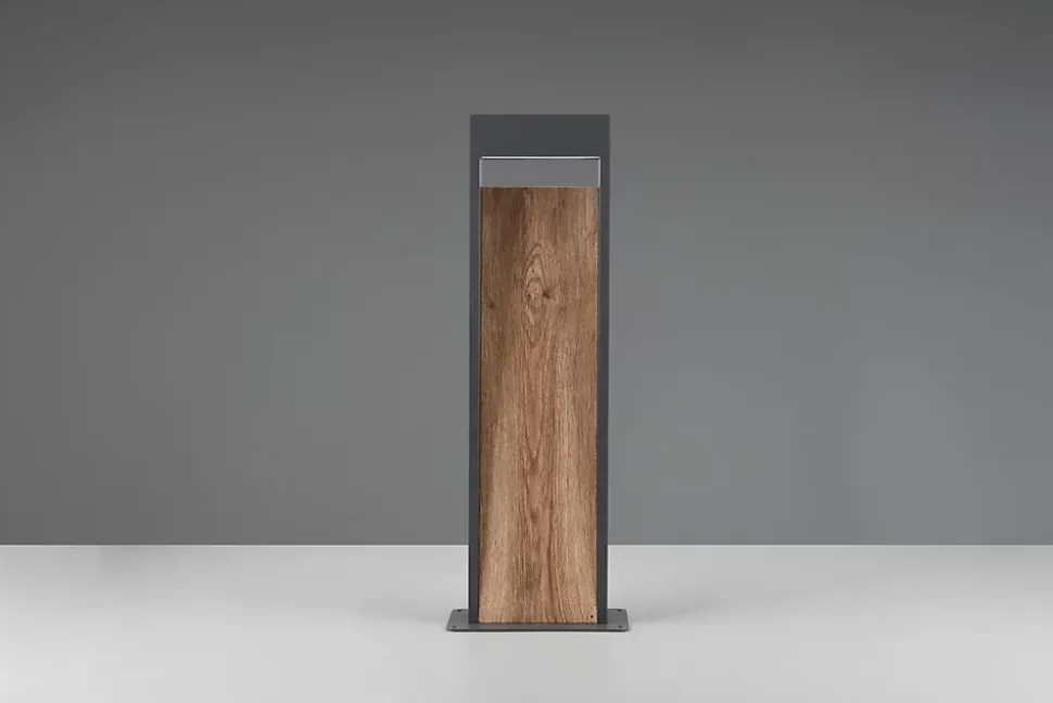 Les caractéristiques techniquesLe potelet extérieur Salmon de Trio est conçu en fonte d’aluminium robuste, offrant une excellente résistance aux intempéries avec un indice de protection IP44.Il intègre une lampe LED SMD de 11 watts produisant une lumière chaude de 3000K et 1200 lumens, idéale pour éclairer votre espace extérieur avec élégance et efficacité.Ce luminaire est spécialement adapté pour baliser les allées, les entrées ou les paliers, garantissant sécurité et confort visuel.Les avantages esthétiquesLa finition anthracite combinée à une imitation bois apporte une touche naturelle et moderne, très en vogue, qui sublime votre jardin ou terrasse.La lumière indirecte et diffuse crée une ambiance chaleureuse pour accueillir vos invités et sécuriser les déplacements extérieurs.Grâce à la technologie LED, ce potelet permet d’économiser jusqu’à 80 % d’énergie par rapport aux lampes halogènes traditionnelles, tout en offrant une longue durée de vie et un faible dégagement de chaleur.