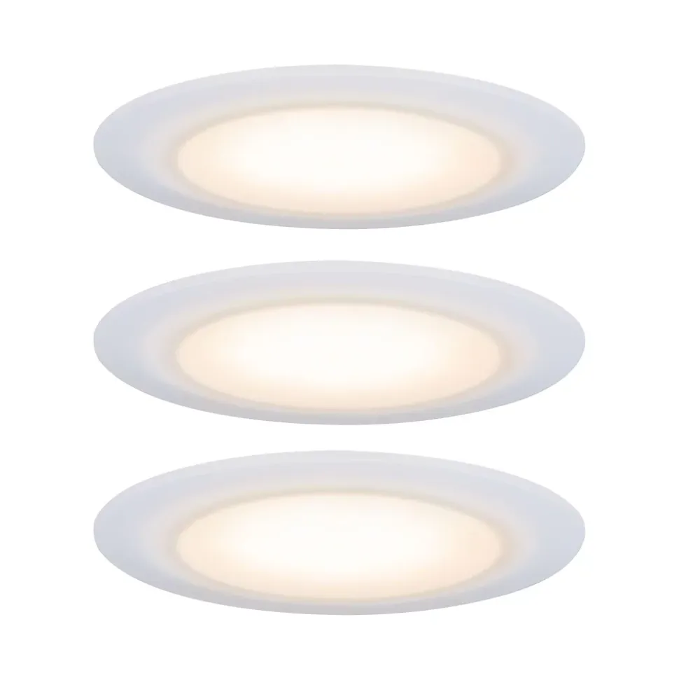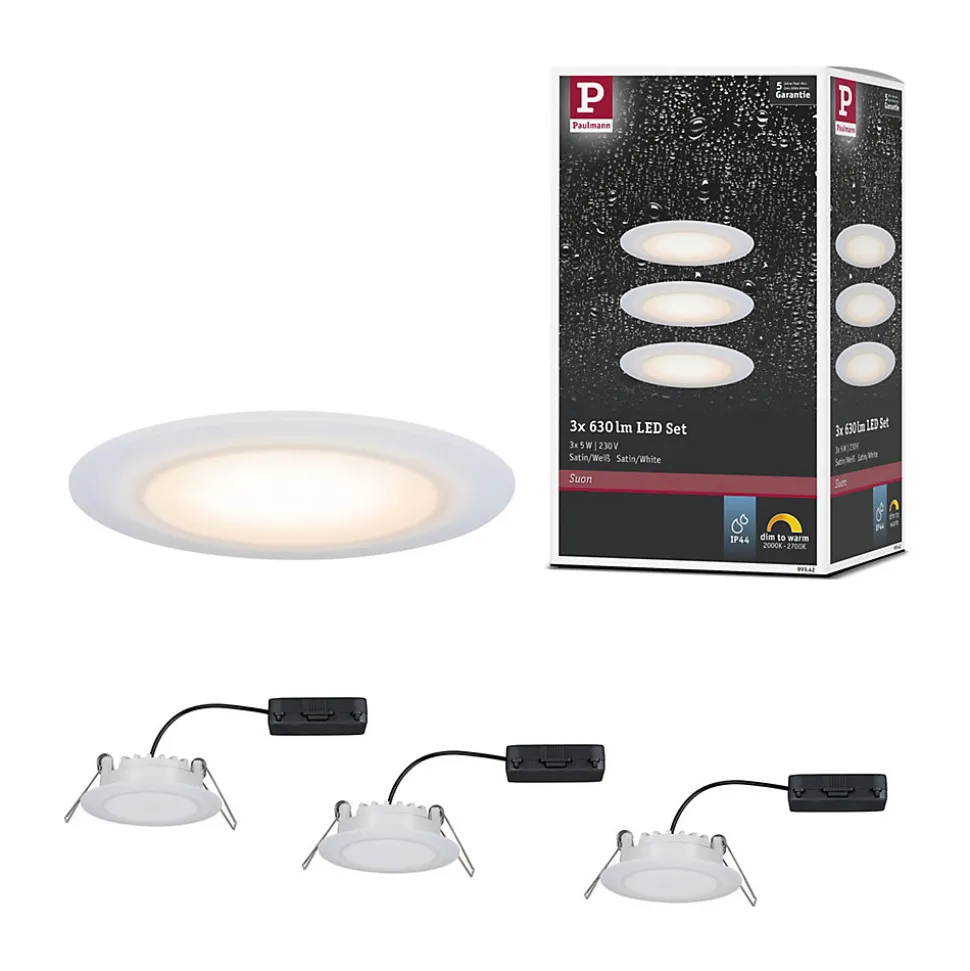 Kit composé de 3 luminaires fourni avec module LED|Variation de température de blanc chaud|Protection IP : IP44 – Protection contre les projections d’eau|Pour raccordement direct au secteur 230V