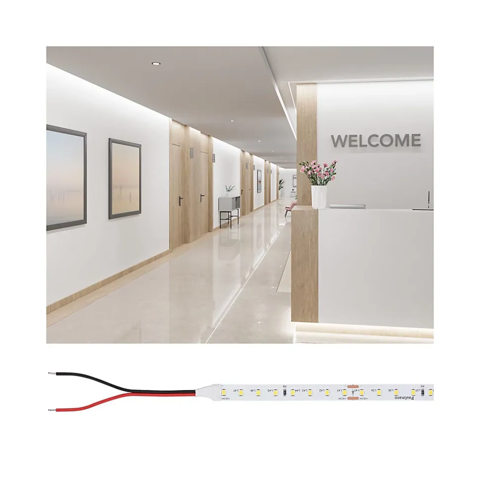 Des Strips LED de haute qualité pour des projets d’éclairage intérieur professionnels|Longue durée de vie de 50 000 h|Rendu des couleurs CRI ≥ 90 et consistance des couleurs SDCM 3|Câble d’alimentation bilatéral (200 mm)|Une logistique optimisée et durable : Emballage petit, compact et sans plastique|Ensemble d’accessoires complet : Connecteurs, commandes et accessoires d’alimentation correspondants disponibles|Sécurité de planification grâce aux données DIALux disponibles