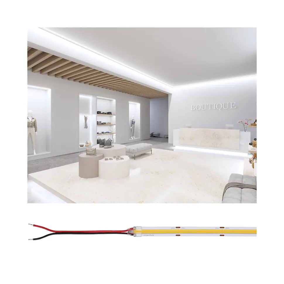 Des Strips LED de haute qualité pour des projets d’éclairage intérieur professionnels|Longue durée de vie de 30 000 h|Rendu des couleurs CRI ≥ 80 et consistance des couleurs SDCM 5|Câble d’alimentation bilatéral (200 mm)|Une logistique optimisée et durable : Emballage petit, compact et sans plastique|Ensemble d’accessoires complet : Connecteurs, commandes et accessoires d’alimentation correspondants disponibles|Sécurité de planification grâce aux données DIALux disponibles
