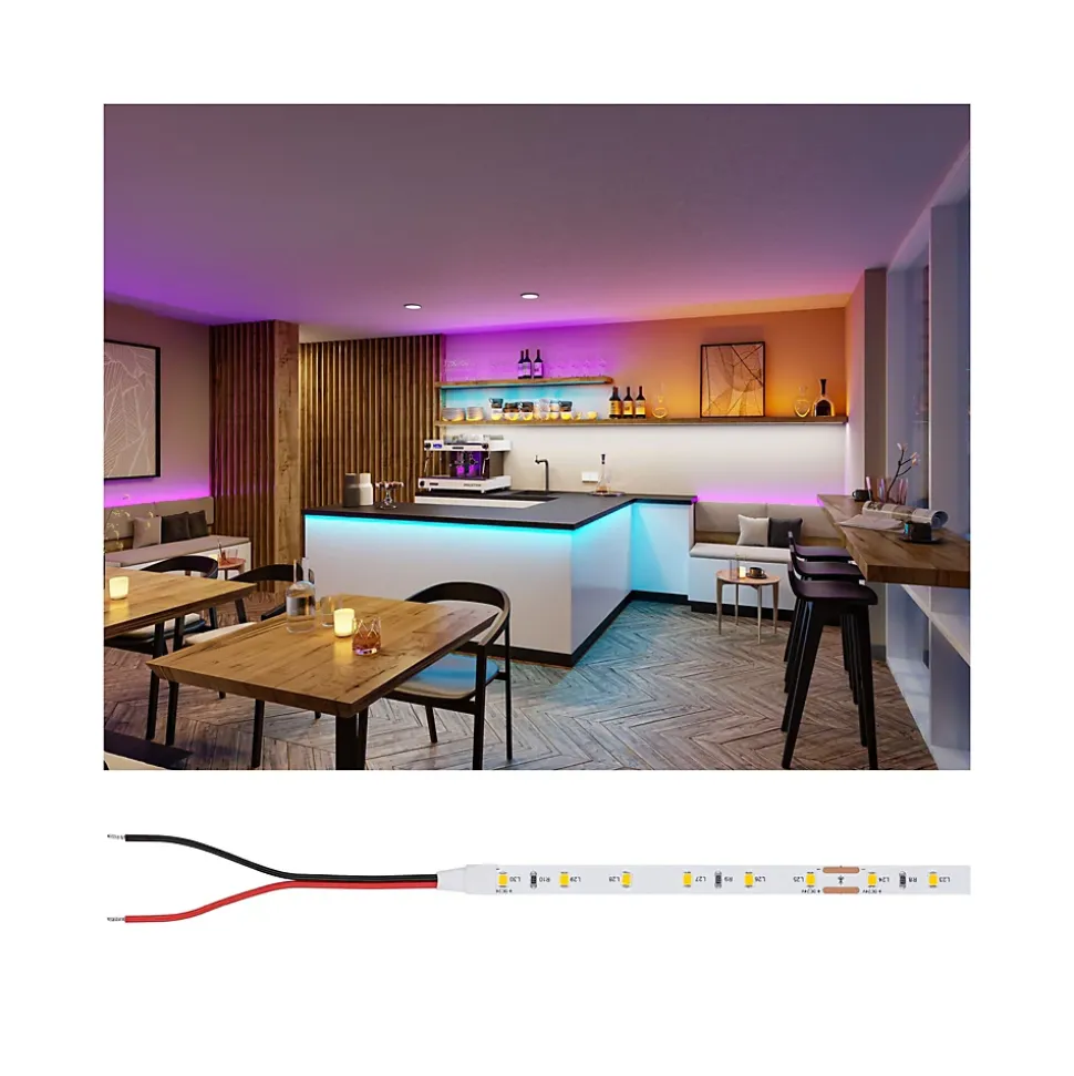 Température de couleur : Turquoise|Des Strips LED de haute qualité pour des projets d’éclairage intérieur professionnels|Longue durée de vie de 30 000 h|Rendu des couleurs CRI ≥ 80 et consistance des couleurs SDCM 5|Câble d’alimentation bilatéral (200 mm)|Une logistique optimisée et durable : Emballage petit, compact et sans plastique|Ensemble d’accessoires complet : Connecteurs, commandes et accessoires d’alimentation correspondants disponibles|Sécurité de planification grâce aux données DIALux disponibles