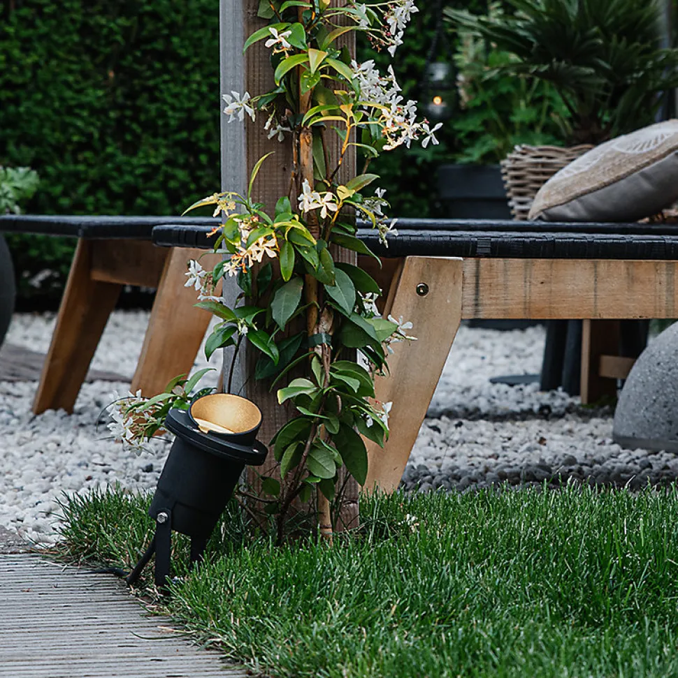 Où que vous souhaitiez placer ce projecteur à piquer Done dans votre jardin, sa petite taille en fait l’accessoire idéal ! Malgré sa petite taille, il est très efficace pour mettre en valeur un arbre, par exemple. Il diffuse une lumière indirecte, ce qui crée une ambiance vraiment cosy pour vos soirées en extérieur ! Avec un indice de protection IP65, il résiste à toutes les conditions météorologiques. Vous pouvez compléter le projecteur Done en y ajoutant une ampoule GU10 d’une puissance maximale de 50 watts, et il sera prêt à illuminer votre jardin ! Sa hauteur totale est de 30 cm. Il est livré avec un cordon et une prise d’une longueur maximale de 185 cm. La tête du projecteur est orientable afin de diriger la lumière comme vous le souhaitez. Si vous voulez créer une ambiance cosy en soirée, vous pouvez également l’atténuer (variateur non inclus). Un projecteur de jardin moderne et élégant : c’est le Done.