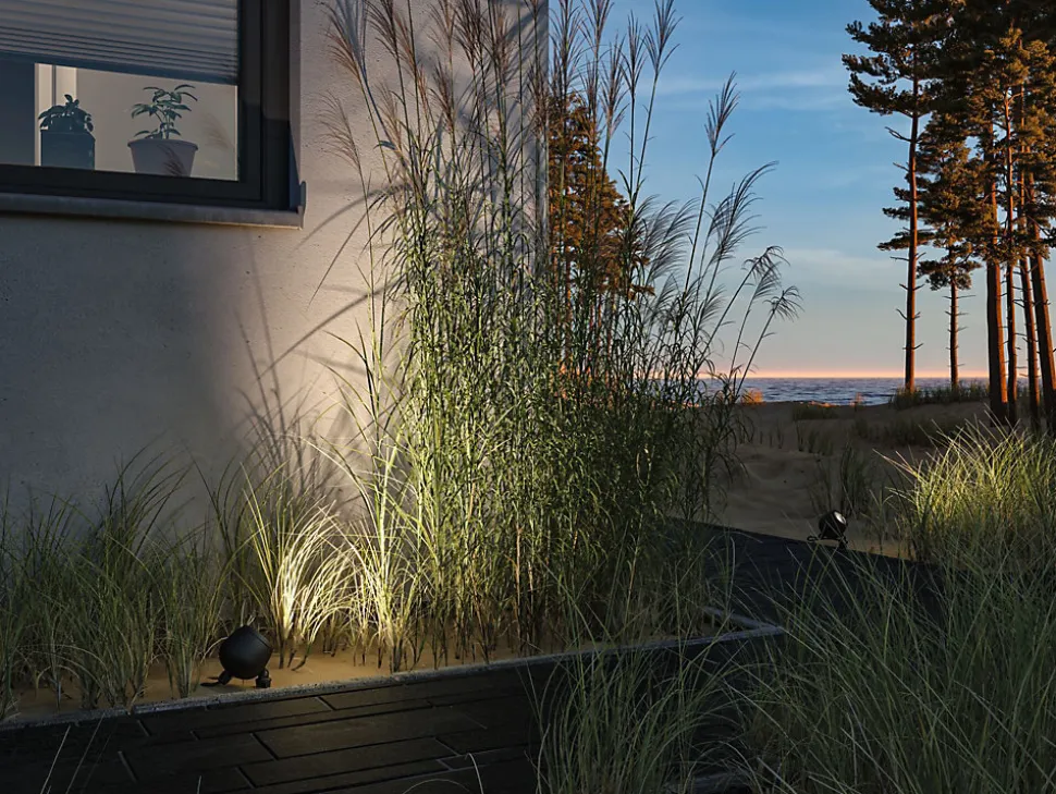 Le spot Kikolo avec un angle de rayonnement de 60 degrés et sa lumière blanc chaud convient parfaitement pour l’éclairage de plantes ou d’objets. Grâce à son matériau résistant à la corrosion, il convient à une utilisation en bord de mer et vous pouvez également l’orienter à votre guise. La protection IP65 rend le luminaire encore plus résistant aux jets d’eau.