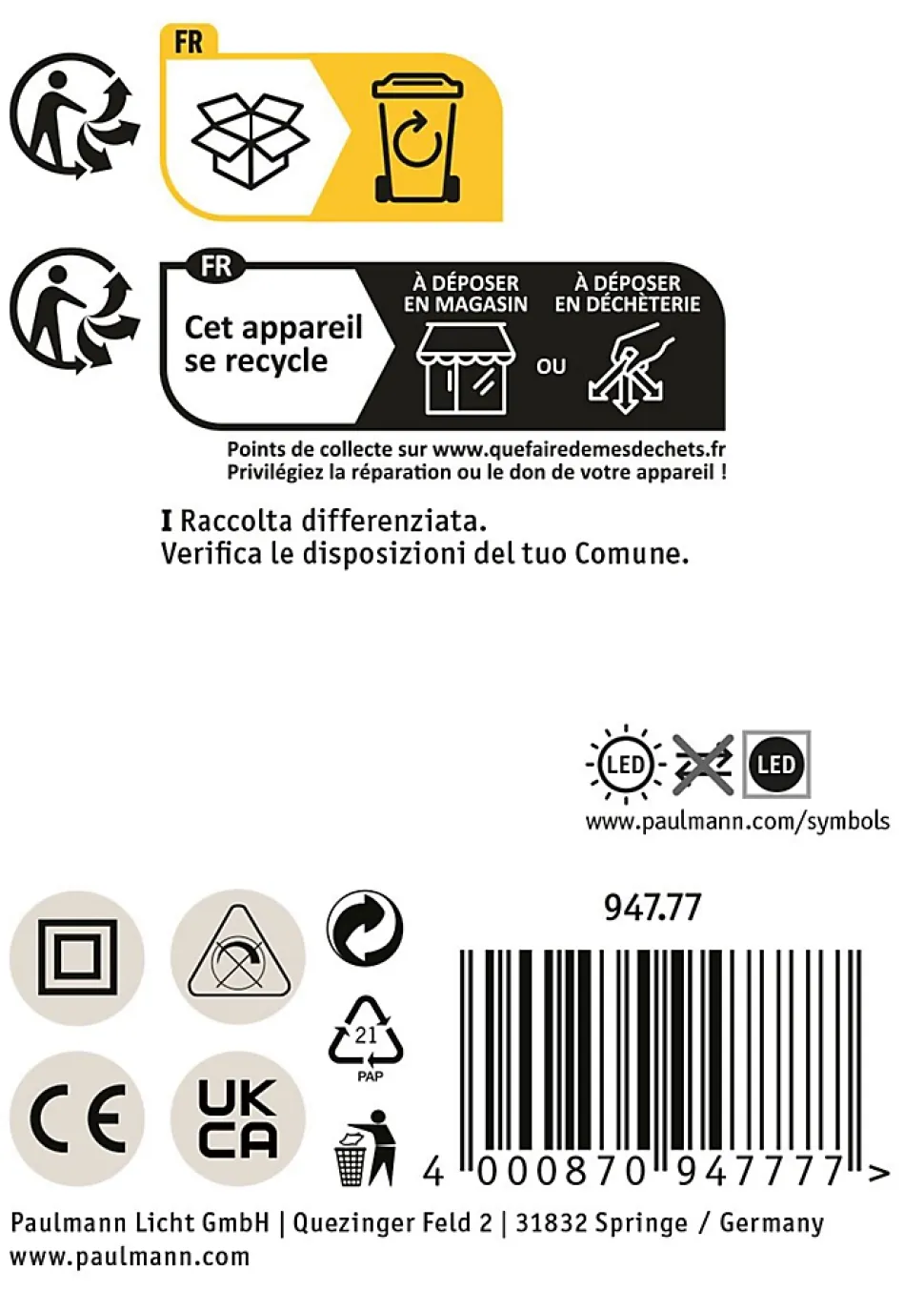 Température de couleur: 3000K – Blanc chaud|Protection IP : IP65 – Protection contre les jets d’eau|Pour raccordement direct au secteur 230V|Ampoules LED intégrée également fournies