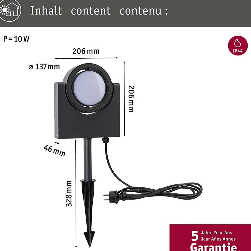 Le spot Swivea séduit par son design uniforme et contemporain et met en valeur vos fleurs, arbustes et arbres dans son flux de lumière blanc chaud. Si vous le souhaitez, vous pouvez aussi utiliser le luminaire sans piquet en tant que spot en saillie pour l’éclairage des façades, des abris de jardin et des terrasses. Sa tête orientable à cardan permet de personnaliser la direction de lumière.