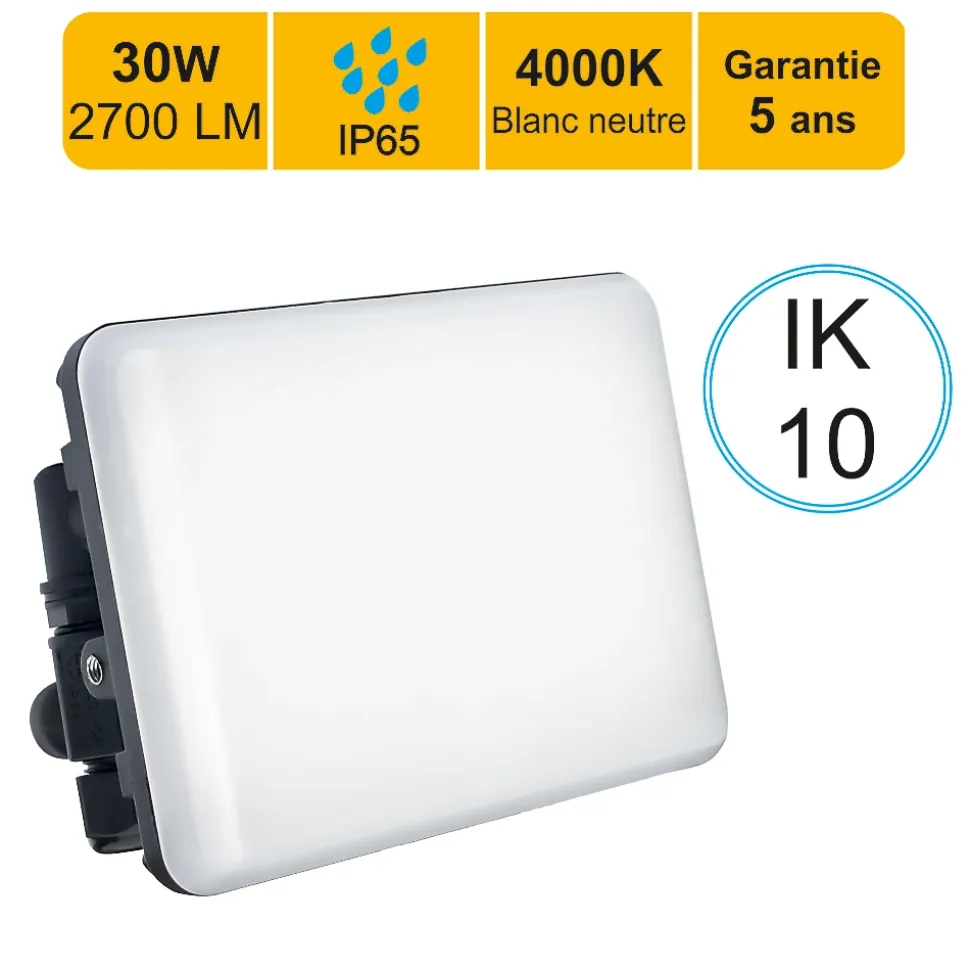 La marque Lutèce propose des produits hauts de gamme destinés à des installations professionnelles mais aussi aux particuliers qui souhaitent avoir des produits de qualités durables dans le temps.Ce projecteur LED 30W représentent une solution performante et économique, en remplacement idéal des anciens modèles halogènes de 250W. Avec une puissance lumineuse de 2550 lumens, il assure un éclairage intense et homogène, parfaitement adapté aux espaces extérieurs. Leur conception tout en aluminium favorise une excellente dissipation thermique contrairement à la fonte d’aluminium, prolongeant ainsi la durée de vie des composants internes des projecteurs et garantissant un éclairage stable, sans risque de surchauffe ni baisse de performance. Une meilleure dissipation thermique préserve les surfaces sur lequelles le projecteur est accroché (exemple : peinture sur vos murs, verni sur les poutres). Ce projecteur est équipé d’un transformateur intégré, facilitant ainsi une installation rapide et sans effort.