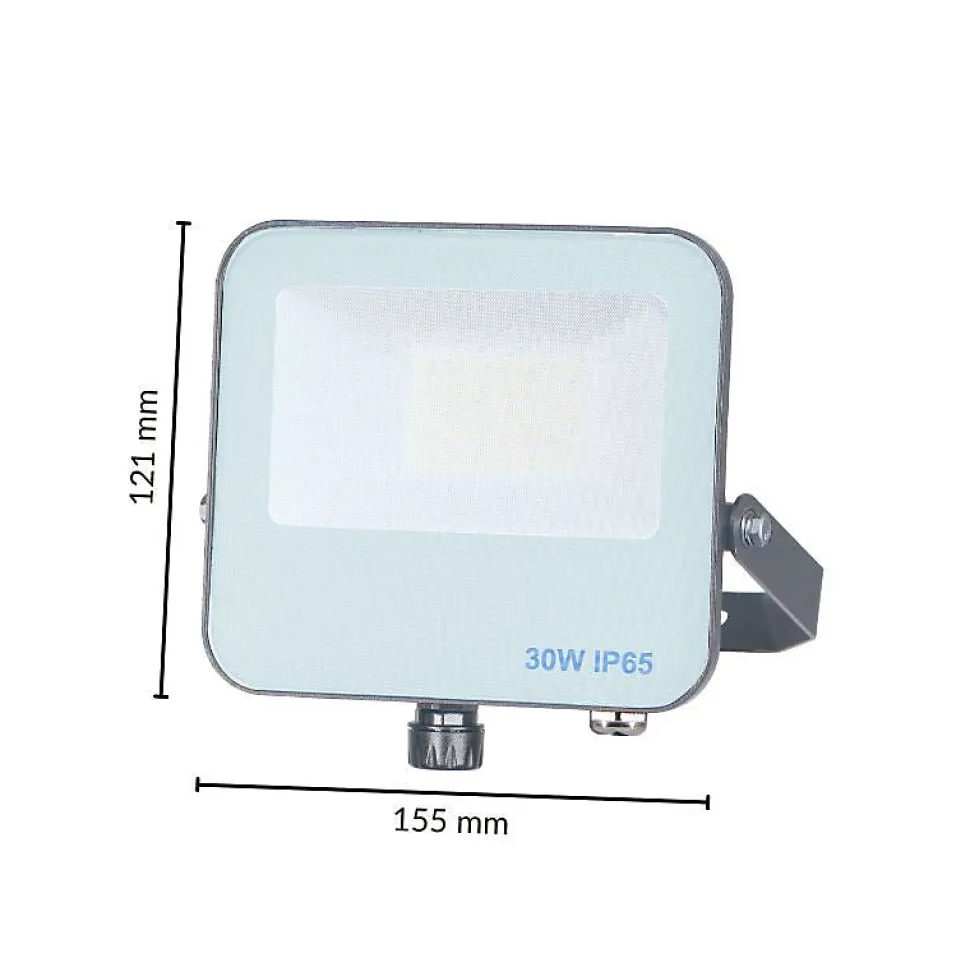 Projecteur LED 30W IP65 CCT : puissance et polyvalence pour l’extérieurLe Projecteur LED 30W IP65 avec fonction CCT est la solution idéale pour éclairer efficacement vos extérieurs. Avec ses 3600 lumens, il garantit une luminosité puissante équivalente à un projecteur halogène de 210W, tout en consommant seulement 30W. Étanche (IP65) et robuste, il s’adapte à tous les usages extérieurs : jardin, terrasse, façade ou même piscine.Les caractéristiques du projecteur LED 30W IP65 Puissance de 30W : offre un excellent rapport consommation/éclairage. Intensité lumineuse de 3000 lumens : assure une lumière puissante et homogène. Fonction CCT : permet de choisir entre 3000K, 4000K et 6000K selon l’ambiance souhaitée. Indice de protection IP65 : résiste parfaitement aux intempéries et aux projections d’eau. Équivalent halogène 210W : remplace un ancien projecteur puissant en réduisant la consommation.Les avantages du projecteur LED 30W avec fonction CCT Polyvalence d’éclairage : adapte la température de couleur selon le besoin. Installation simple : se fixe rapidement sur tout support extérieur. Éclairage instantané : s’allume sans délai et sans scintillement. Économie d’énergie : consommation optimisée pour un éclairage extérieur efficace.Comment installer ce projecteur LED 30W IP65 ? Choisissez l’emplacement : fixez le projecteur sur un mur, au sol ou sur un mât selon vos besoins. Branchez l’alimentation : raccordez-le au circuit électrique (220-240V). Ajustez l’angle : orientez le projecteur vers la zone à éclairer. Sélec