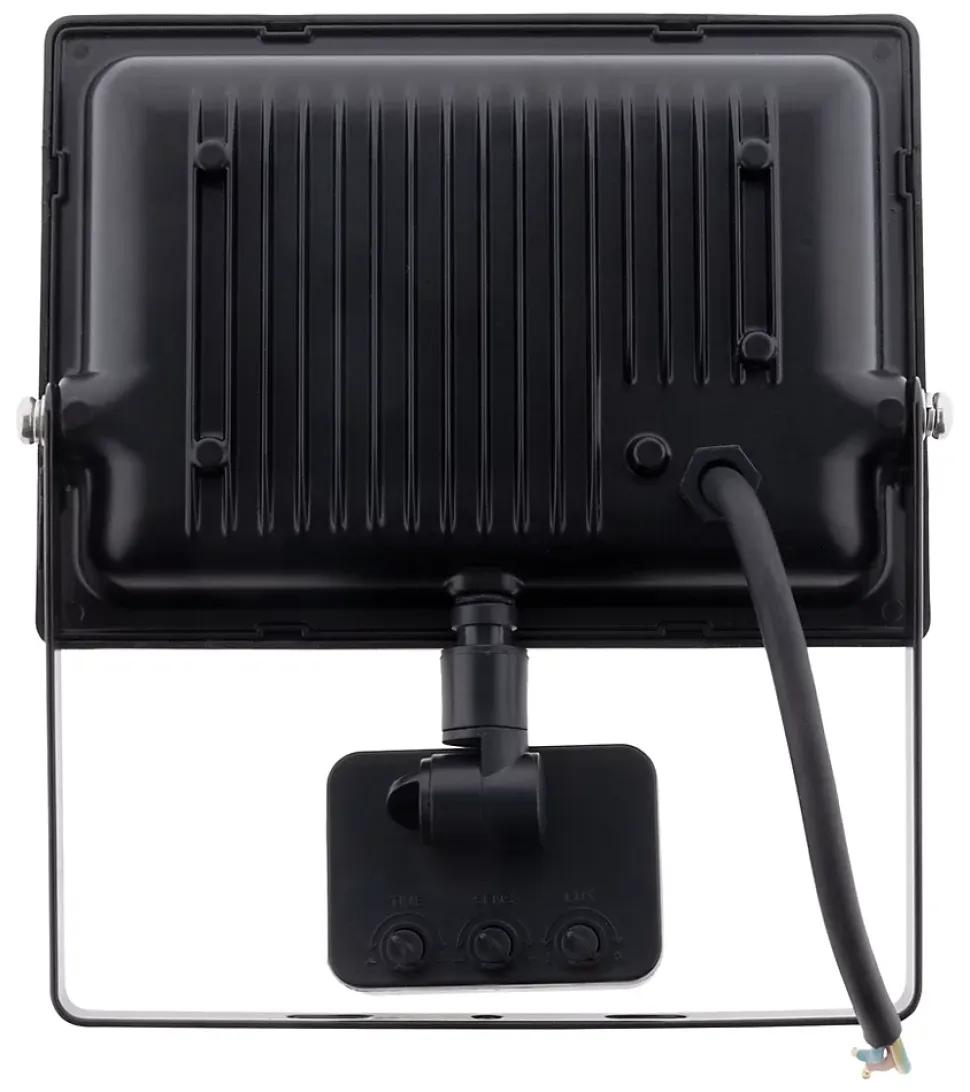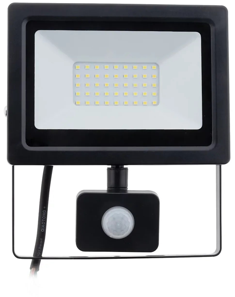 Projecteur LED étanche. En noir ou blanc. Indice de protection : IP44. Type de LED : SMD 2835. Portée d’éclairage : 5m. Puissance : 30W. Intensité lumineuse : 2400 lumens. Température de couleur : 6000K. Couleur d’éclairage : blanc froid. Type de câble : H05RN-F 3G 1mm² (longueur 35cm). Angle de diffusion : 120°. Temps de détection réglable : de 3 secondes à 20 minutes. Portée de détection réglable : 8 mètres. Sensibilité lumineuse réglable : de 5 à 2000lux