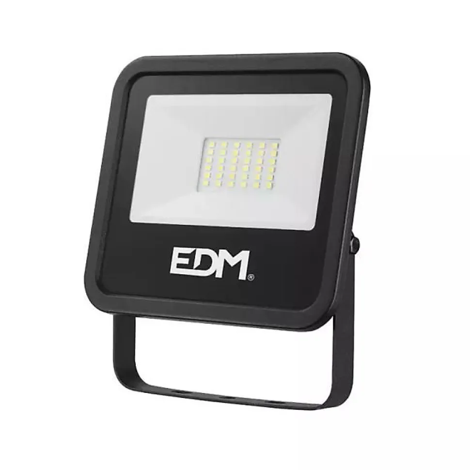 Projecteur LED 30W noir avec support et une puissance d’éclairage de 240W. Teinte de lumière : Blanc du jour 6400K. Fonctionne sur secteur AC 220-240V. Angle d’éclairage 120°. Étanchéité : IP65. Câble de connexion étanche : IP68. Dimensions : largeur : 15,8cm / profondeur : 13,5cm / hauteur : 2,9cm. Usage domestique ou professionnel.Longue durée de vie : 25 000h. Garantie 2 ans. 6400K 30W 240W 2370lm 120° 25000h IP65