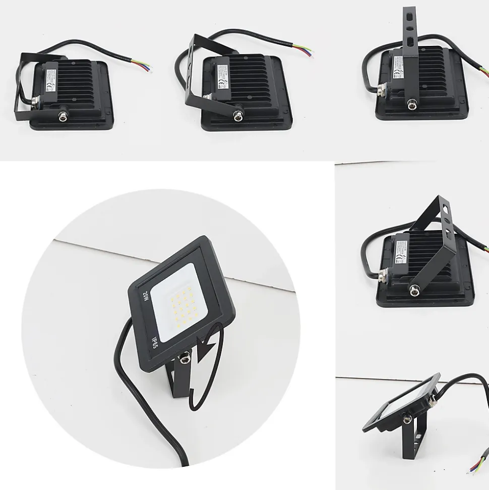 Caractéristiques du projecteur LED extérieur de 20W :Puissance efficace : 20W, idéal pour éclairer les jardins, garages, patios et autres espaces extérieurs.Protection IP65 : Résistant à l’eau et à la poussière, parfait pour supporter des conditions climatiques difficiles.Design compact et résistant : Dimensions de 95x120x22mm, boîtier métallique avec finition noire et verre trempé, garantissant durabilité et résistance.Éclairage uniforme : Angle d’ouverture de 120°, offrant une lumière sans ombres ni reflets gênants.Puces LED haute performance : Technologie SMD 2835 avec un CRI supérieur à 80, offrant une lumière naturelle et claire.Résumé des spécifications :Tension : 220-240V/ACPuissance : 20WTempérature de couleur : 3000K (chaud) ou 6000K (froid)Lumens : 1900lm (chaud) / 2100lm (froid)Angle d’ouverture : 120°Protection : IP65Ce projecteur LED de 20W allie efficacité énergétique, résistance et facilité d’installation, étant une excellente option pour éclairer n’importe quel espace avec une faible consommation d’énergie.