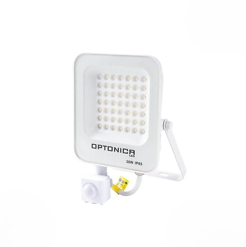 Projecteur LED Extérieur 30W IP65 Blanc avec Détecteur de Mouvement Crépusculaire Le projecteur LED extérieur 30W IP65 avec détecteur de mouvement crépusculaire est une solution d’éclairage efficace pour sécuriser et éclairer les extérieurs. Avec ses 2400 lumens et son faisceau large de 120°, il offre une visibilité confortable autour des entrées, façades, allées ou zones de passage, tout en automatisant l’allumage pour éviter les éclairages inutiles.Détails techniques du projecteur LED 30W avec détecteur Puissance : 30W Flux lumineux : 2400 lumens Rendement lumineux : 80 lm/W Angle d’éclairage : 120° Indice de protection : IP65 (résistant à la poussière et aux projections d’eau) Classe énergétique : F Intensité du courant : 136 mAh Matériau : Aluminium Dimensions : 18,7 x 21,5 x 4,5 cm Longueur du câble : 15 cm Détecteur : Mouvement crépusculaire (oui) Temps de détection : Durée de vie estimée : ~25 000 heures Garantie : 2 ansLes atouts du projecteur extérieur LED IP65 avec détection Ce projecteur combine un éclairage LED fonctionnel et une gestion intelligente de l’allumage. Le détecteur de mouvement crépusculaire déclenche la lumière lorsque la luminosité ambiante baisse et qu’un mouvement est détecté, ce qui améliore la sécurité et limite la consommation. Son indice IP65 assure une utilisation fiable en extérieur, et son boîtier en aluminium favorise une dissipation thermique efficace pour u