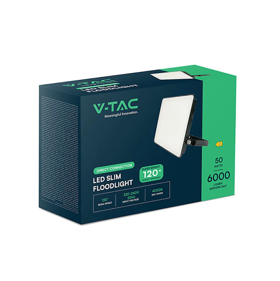 Projecteur LED Extra-Fin 50W – 6000lm – IP65 – 6500K – Aluminium Noir