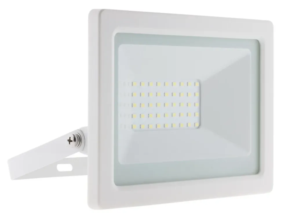 Projecteur étanche (IP65), LED SMD 2835, Portée d’éclairage : 5 mètres, Design compact, Puissance : 30 Watts, Flux lumineux : 2400 lumens, Kelvins : 6000K (blanc froid), Câble : 35cm H05RN-F 3G*1.00mm, Matériaux : corps en aluminium, Angle de diffusion : 120°