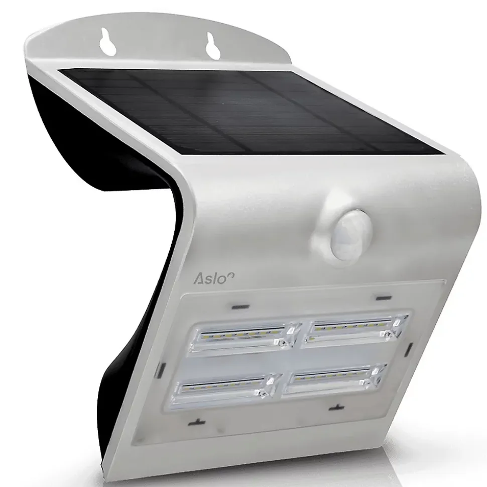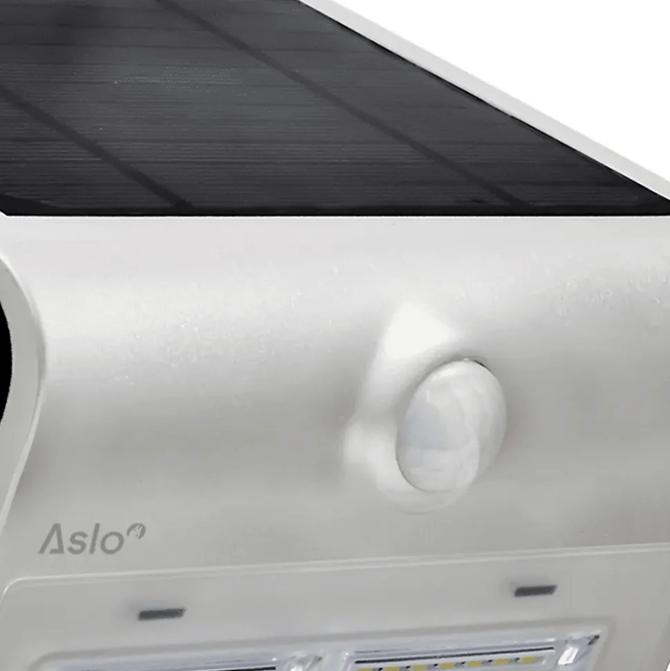 Le projecteur solaire à détecteur de mouvement ASLO offre un éclairage extérieur économique et intelligent. Il est conçu pour s’adapter à toutes les conditions météorologiques.Avec des modes d’éclairage intelligents et une batterie remplaçable, ce lampadaire solaire répond aux différents besoins d’éclairage extérieur : sécurité / décoratif. Choisissez l’efficacité énergétique et l’éclairage automatisé avec ce projecteur à panneau solaire polyvalent.Le spot solaire ASLO vous offre trois modes d’éclairage pour répondre à divers besoins :- Mode A (1 clic) : L’éclairage s’active automatiquement à la tombée de la nuit à 20 % d’intensité et s’éteint après 5 heures.- Mode B (2 clics) : L’éclairage s’active automatiquement à 100 % d’intensité (400 lm) lors de la détection d’un mouvement dans un rayon de – Mode C (3 clics) : L’éclairage s’active automatiquement à 100 % (400 lm) lors de la détection d’un mouvement dans un rayon de – 4 clics pour éteindreCaractéristiques : – Nombre de LED : Avant 28 / Arrière 2. – Puissance lampe : 3.2W. – Puissance panneau solaire : 2.3W.- Température de couleur : Avant : 6000K (blanc froid) / arrière : 3000K (blanc chaud).- Flux lumineux : 400 Lm. – Matière : Corps : ABS / Diffuseur : polycarbonate / Panneau solaire : Silicium monocristallin. – Batterie lithium 2 Ah – 3.7 V. – Détecteur de mouvements. – Angle de détection : 120°.- Distance de détection : 2-6m. – Hauteur détection : 4m.- Utilisation : extérieur. – Fixation saillie, sur mur. – Anti-UV. – Résistant au feu. – Indice de protection : IP65. – Classe d’isolation : III. – Normes CE/RoHS.- Dimensions : 14 x 10.9 x 21.2 cm. – Poids : 0.69 kg.<