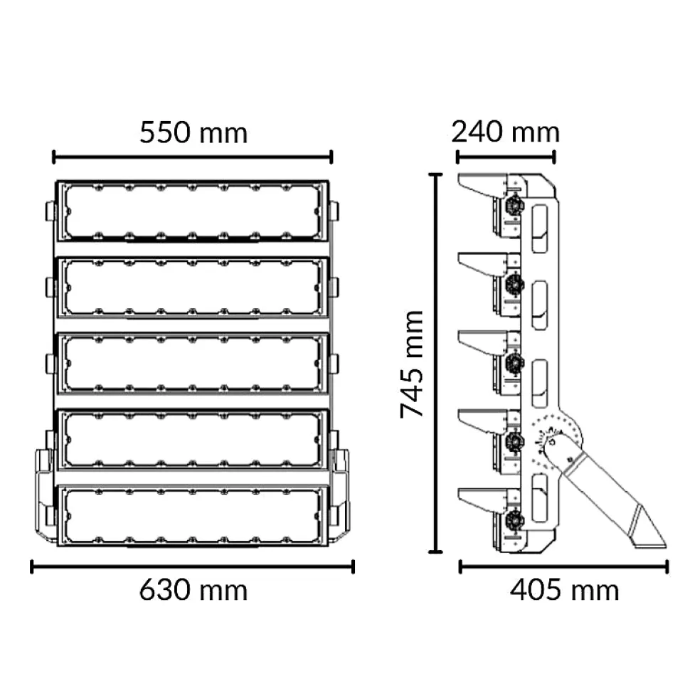 [Projecteur LED Puissant Industriel 1250W 170lm/W IP66 Noir Orientable] Projecteur LED extrêmement performant pour les applications industrielles à fort besoin en lumière.[Puissance de 1250W générant 212 500 lumens] Offre un éclairage puissant et constant pour les chantiers, zones minières ou installations sportives.[Angle d’ouverture de 120°] Uniformité lumineuse optimale pour une visibilité parfaite et sans ombre portée.[Conception orientable et étanche IP66] Adapté aux installations extérieures comme intérieures, même dans des conditions difficiles.[Garantie 5 ans avec certification CE & RoHS] Sécurité et durabilité assurées pour les professionnels exigeants.- [Projecteur LED Puissant Industriel 1250W 170lm/W IP66 Noir Orientable] Projecteur LED extrêmement performant pour les applications industrielles à fort besoin en lumière.