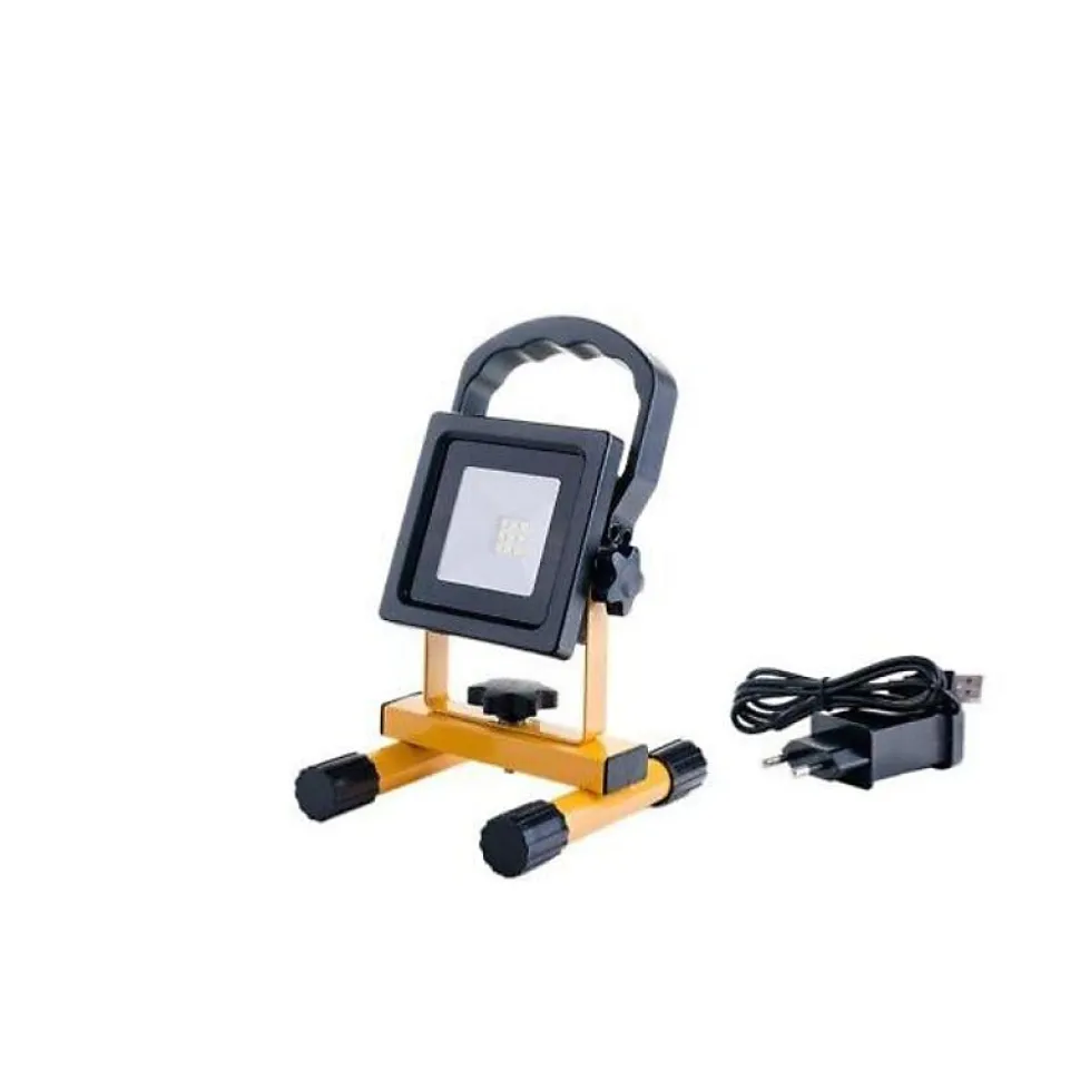 Profitez d’un éclairage d’appoint fiable où que vous soyez avec ce projecteur LED rechargeable 10W portable IP44. Léger, compact et équipé d’une poignée jaune, il est idéal pour vos déplacements, chantiers et activités extérieures.Caractéristiques techniques du projecteur LED rechargeable 10WConçu pour allier mobilité et efficacité, ce projecteur LED offre des atouts essentiels :Puissance : 10W.Flux lumineux : 600 lumens, soit 60 lm/W.Angle d’éclairage : 120°, diffusion large et homogène.Autonomie : 4 heures d’utilisation en continu.Temps de charge : 5 heures pour une recharge complète.Indice de protection : IP44, résistant aux éclaboussures et à la poussière.Dimensions compactes : 12,6 x 13,3 x 21,8 cm.Durée de vie : ~25 000 heures.IRC : Ra 80, pour un rendu naturel des couleurs.Matériau robuste : aluminium avec finition noir et jaune.Non dimmable et non orientable.Classe énergétique : G.Certification : CE & RoHS.Garantie : 2 ans.Les points forts du projecteur LED portable 10WLe projecteur LED rechargeable 10W est une solution d’éclairage pratique et économique. Sa batterie intégrée vous offre une autonomie de 4 heures, idéale pour un usage nomade. Compact et léger, il se transporte facilement grâce à sa poignée jaune ergonomique. Sa robustesse et son indice IP44 le rendent adapté aux environnements extérieurs, même en conditions difficiles. C’est un allié indispensable pour les ch