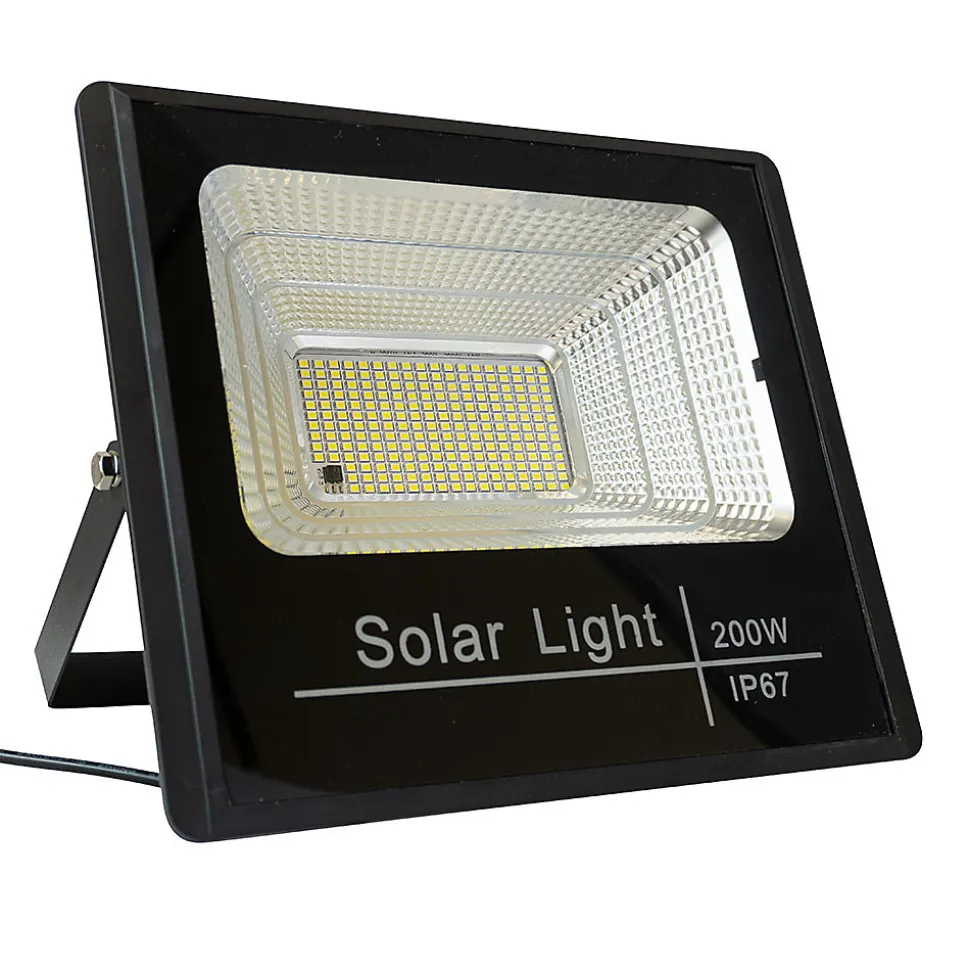 Éclairez vos extérieurs sans raccordement électrique avec ce projecteur LED solaire haute performance. Résistant à l’eau et à la poussière (norme IP67), il est idéal pour terrasses, jardins, balcons ou zones sans électricité. Son panneau solaire déporté avec câble de 4,6 m assure une exposition optimale. Doté d’un détecteur de mouvement et d’une batterie 1800 mAh, il s’active à chaque passage et offre une autonomie d’1h30 après 5 h de charge. Installation facile avec kit de fixation inclus et contrôle total via télécommande. Puissance – 200 W. Lumens – 400 lm. LEDs – 282 SMD. Batterie – 1800 mAh. Temps de charge – 5 h. Modes – ON/OFF/AUTO, timer 3/6/8 h, intensité réglable (20 à 100 %). Couleur – Blanc froid. Panneau – 22 x 13,5 x 2,5 cm. Projecteur – Profondeur 9 cm. Matériaux – Verre et métal. Ce projecteur est une solution économique et sécurisante pour tous vos besoins d’éclairage extérieur.