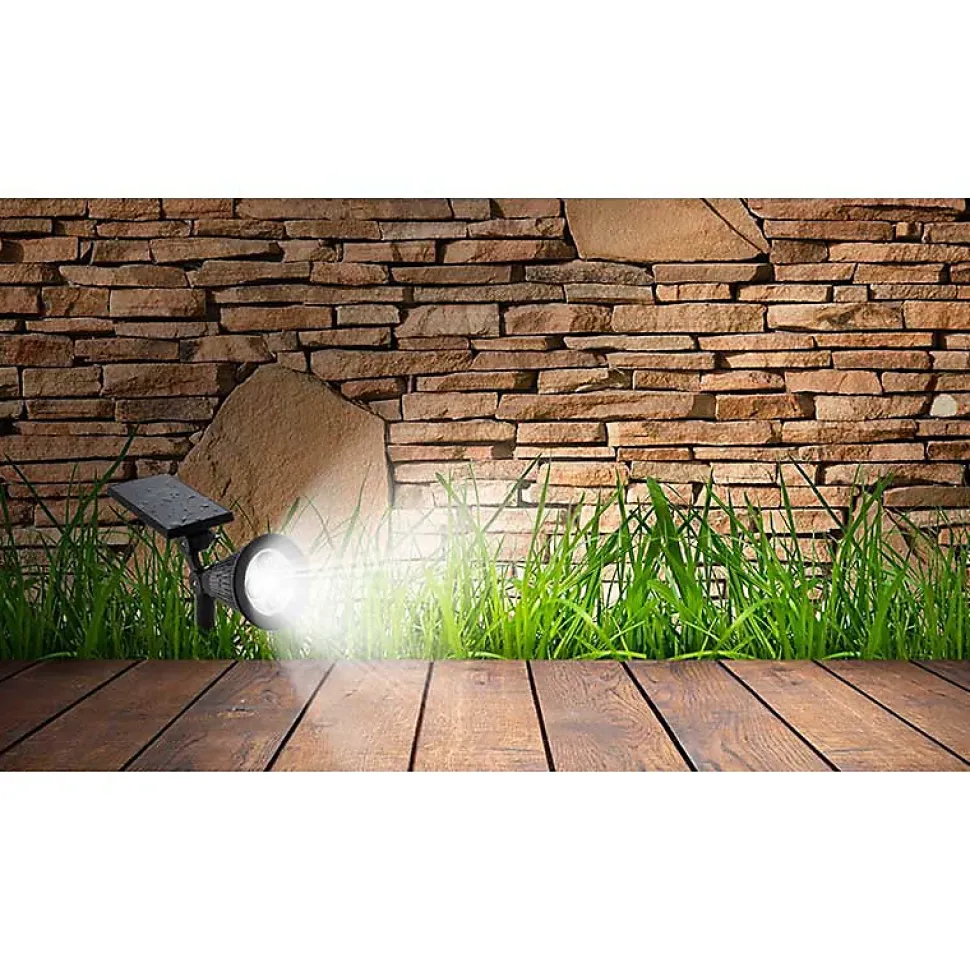 - Caractéristiques : tête pivotante à 90°C / taille du panneau solaire : 86×140 mm / corps en plastique / indice de protection IP44 : protection contre les projections d’eau en tous sens