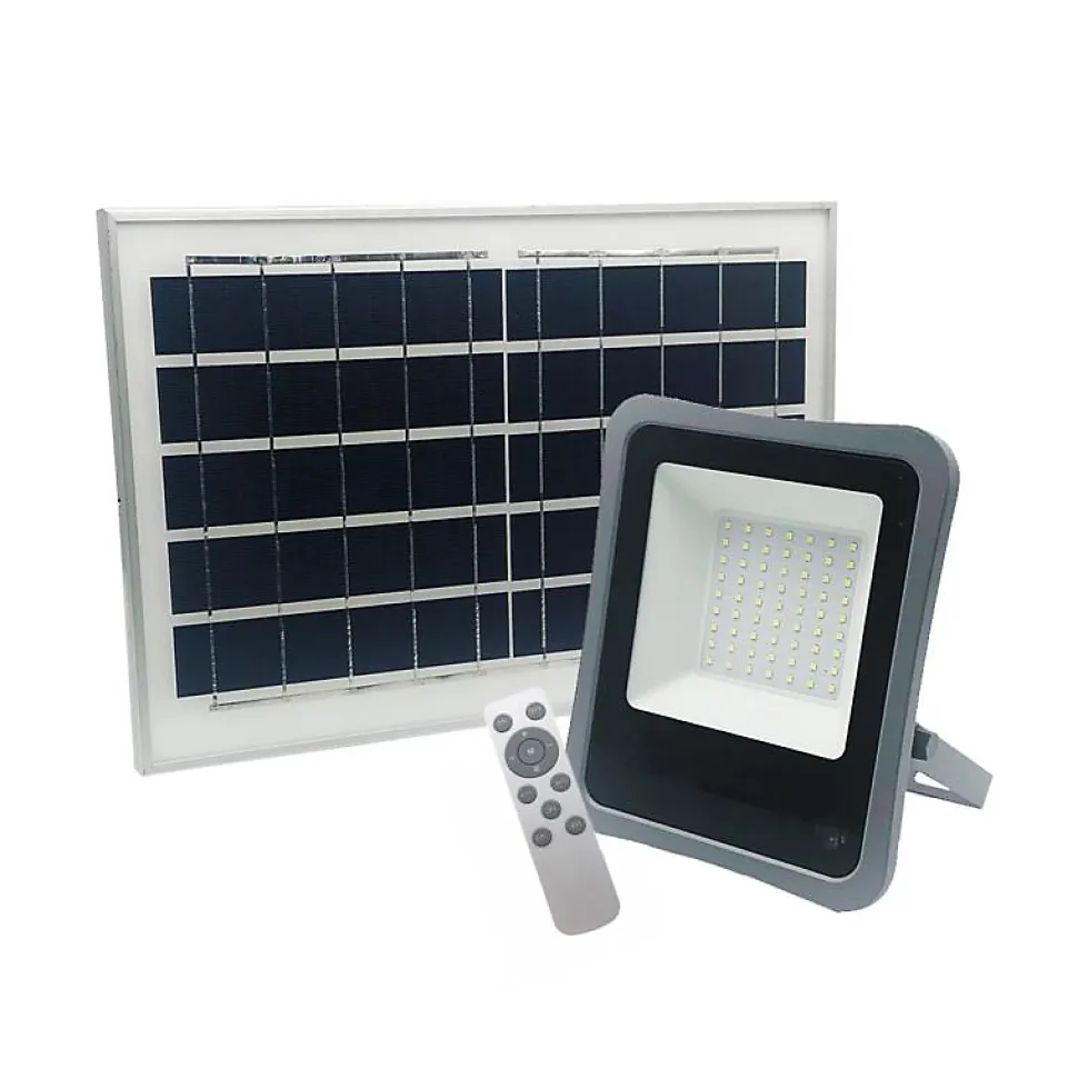 【Projecteur Solaire LED 200W IP65 Dimmable(Panneau Solaire + Télécommande Inclus)】Ce projecteur vous permettra d’éclairer vos espaces extérieurs de façon pratique et économique【Innovant et économique】Equipé de la nouvelle technologie LED, ce projecteur fonctionne grâce à l’énergie solaire. Durant la journée il collecte et stock l’énergie solaire et dès la nuit tombée à l’aide de son détecteur crépusculaire il s’allume. Ses 1400 lumens et 200W vous garantissent une puissance lumineuse à la hauteur de vos attentes. 【Résistant et solide】Possédant un indice de protection IP65, le projecteur est résistant face aux chocs, projections d’eau et aux poussières. Sa batterie en lithium d’une capacité de 20Ah lui garantit une autonomie allant jusqu’à 8heures. 【Installation】Le projecteur doit être installé sur une surface plane et stable. Pour connecter le projecteur au panneau solaire un câble vous est fourni dans le kit. Pour une efficacité optimale, pensez à installer le projecteur dans un endroit ensoleillé afin qu’il collecte un maximum d’énergie solaire. Muni de sa télécommande il est possible de le contrôler à distance, de régler sa luminosité ainsi que sa durée.【Contenu du kit】1 Projecteur + supports, 1 Panneau Photovoltaïque + supports, 1 Câble d’1m90 environ pour connecter le panneau au projecteur (avec 1 Kit de vis) et 1 télécommande