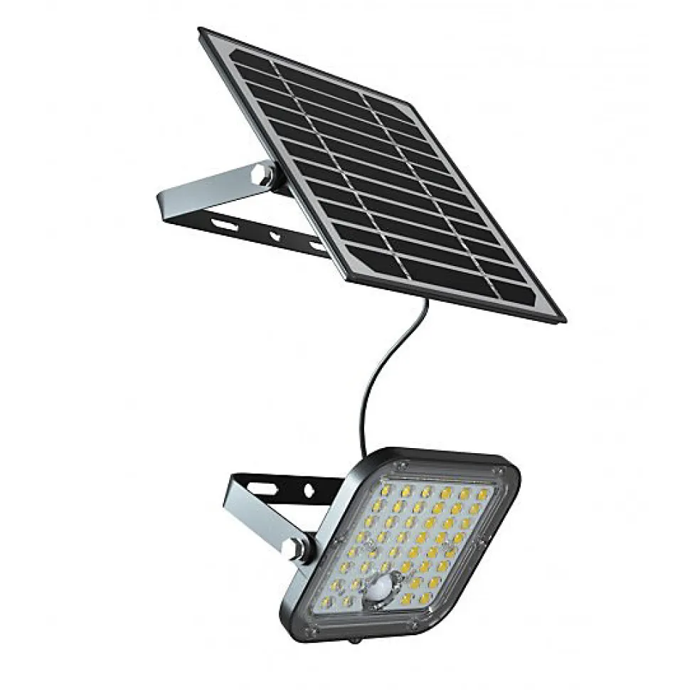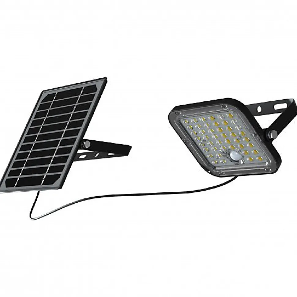 Projecteur Solaire LED 10W Déporté – Télécommande et Détection de Mouvement pour Éclairage Extérieur AutonomeOptez pour un éclairage extérieur intelligent, autonome et puissant grâce à notre projecteur solaire LED 10W déporté. Conçu pour offrir une visibilité optimale, il diffuse une lumière blanche neutre (4000K) de 1500 lumens via un faisceau asymétrique large (120° x 60°), idéal pour couvrir de grands espaces comme les allées, les jardins, les cours ou les terrasses.Deux Modes de Fonctionnement IntelligentsMode Capteur Automatique : activation à la tombée du jour. Passage à pleine puissance lors d’un mouvement (jusqu’à 8 m), puis retour à une luminosité réduite après 60 secondes sans détection.Mode Éclairage Constant : permet de maintenir une luminosité sélectionnée pendant 3, 5 ou 8 heures selon vos besoins.Ces modes sont sélectionnables via une télécommande fournie, vous offrant un contrôle pratique et sans effort.Technologie LED Performante et Énergie Solaire AutonomeBatterie lithium-ion haute capacité : 3,7V – 7200mAh pour une longue autonomiePanneau solaire déporté : fonctionne sans xion au réseau électriqueInstallation rapide : câble 5 mètres et lyre ajustable pour orienter le projecteur facilementConception Robuste et RésistanteBoîtier ABS + PC anti-UV et auto-extinguible : adapté aux environnements extérieurs exigeantsIndice de protection IP65 : étanchéité totale contre la pluie et la poussièreFinition noire élégante et matériaux de qualité pour une durabilité renforcéePourquoi Choisir Ce Projecteur Solaire Déporté 10W ?Installation sans électricité