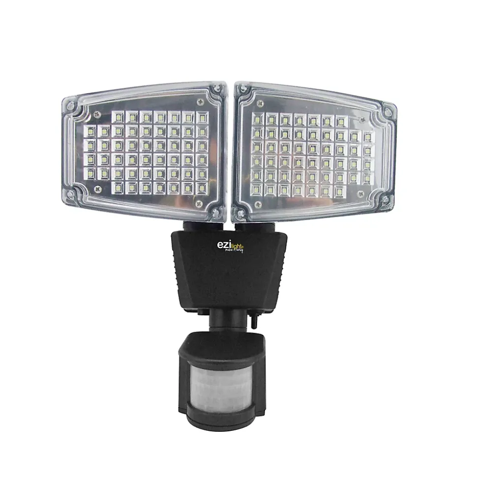 Une solution d’éclairage puissante.EZIlight Solar pro 2 est un projecteur solaire très puissant. Grâce à ses 100 LEDs Longlife, profitez d’une puissance de 1000 lumens qui vous permettra à elle seule d’éclairer vos allées, terrasse et jardin. De plus, ses panneaux de LEDs orientable jusqu’à 180° vous feront bénéficier d’une surface d’éclairage encore plus grande.2 modes de fonctionnement.EZIlight Solar pro 2 vous propose 2 utilisations différentes. Grâce à son bouton de contrôle facilement accessible, vous pourrez aisément choisir entre un éclairage continu (6h d’autonomie) et un mode détecteur de mouvement qui fonctionnera toute la nuit. Par ailleurs, vous pourrez faire fonctionner votre projecteur solaire même pendant la journée.Panneau solaire déporté.EZIlight Solar pro 2 est équipé d’un panneau solaire déporté. Installez votre projecteur où vous le souhaitez et placez ensuite votre panneau solaire jusqu’à 3 mètres de distance. Vous bénéficierez ainsi d’un maximum de luminosité pour que votre projecteur soit toujours parfaitement alimenté. Vous pourrez également camoufler plus aisément votre panneau solaire au-dessus d’un mur ou sur le toit