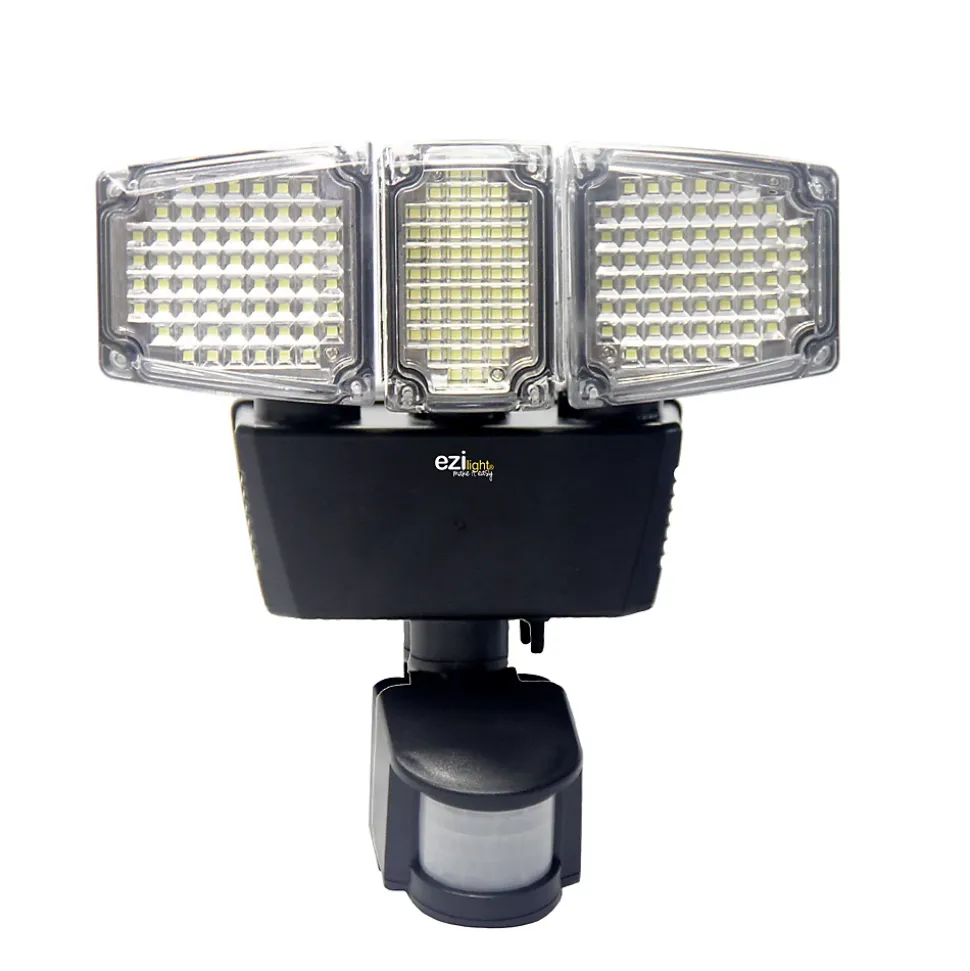 Une solution d’éclairage puissante.EZIlight Solar pro 3 est un projecteur solaire très puissant. Grâce à ses 182 LEDs Longlife, profitez d’une puissance de 1200 lumens qui vous permettra à elle seule d’éclairer vos allées, terrasse et jardin. De plus, ses panneaux de LEDs orientable jusqu’à 180° vous fera bénéficier d’une surface d’éclairage encore plus grande.2 modes de fonctionnement.EZIlight Solar pro 3 vous propose 2 utilisations différentes. Grâce à son bouton de contrôle facilement accessible, vous pourrez aisément choisir entre un éclairage continu et un mode détecteur de mouvement qui fonctionnera toute la nuit. Par ailleurs, vous pourrez faire fonctionner votre projecteur solaire même pendant la journée.Panneau solaire déporté.EZIlight Solar pro 3 est équipé d’un panneau solaire déporté. Installez votre projecteur où vous le souhaitez et placez ensuite votre panneau solaire jusqu’à 3 mètres de distance. Vous bénéficierez ainsi d’un maximum de luminosité pour que votre projecteur soit toujours parfaitement alimenté. Vous pourrez également camoufler plus aisément votre panneau solaire au-dessus d’un mur ou sur le toit pour une installat