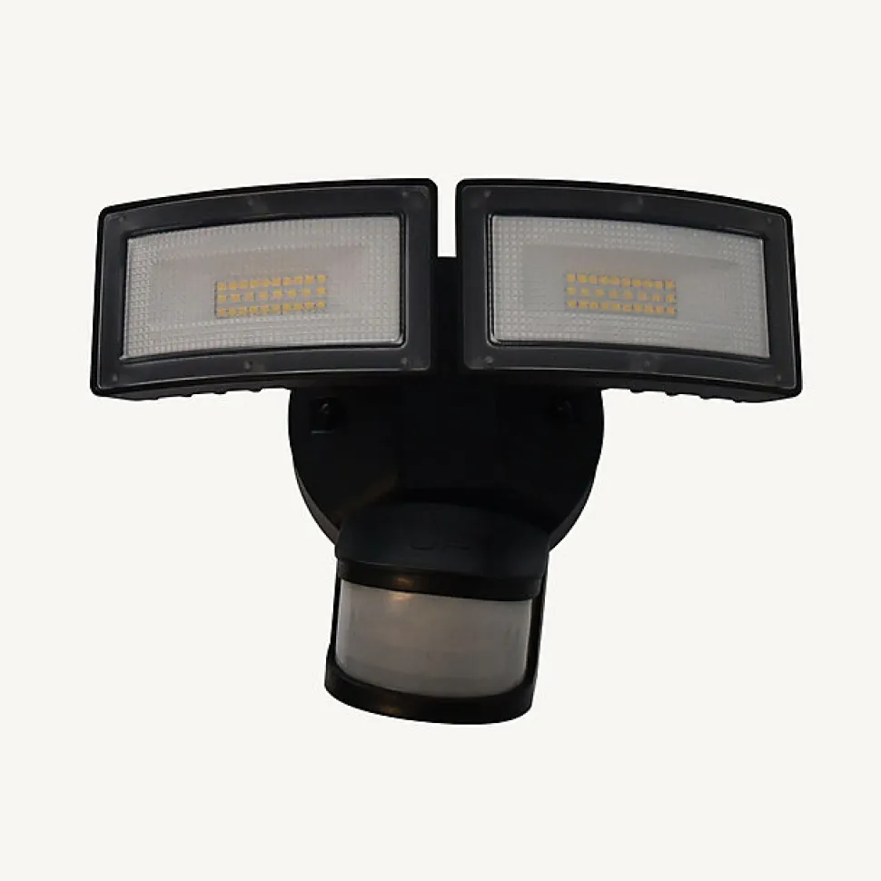 Très éclairant ! Ce projecteur noir à détection de mouvements de qualité professionnelle avec alarme de sécurité vous permettra d’éclairer vos extérieurs !• Couleur LED : Blanc• Couleur du produit : Noir• Nombre de LED : 56 LED• Luminosité : 2900 lumens• Dimensions : L25.6 x H20.6 x l14.3cm• Alimentation : sur secteur• Puissance : 36W• Tension : 230V• Projecteur à détection à 10m de portée, angle de 120°• Angle de détection : 240°• Matière : Aluminium• Garantie : 2 ansUsage & installation :L’indice IP44 vous garantit une étanchéité face à toutes météos.Données techniques :Le projecteur est composé de 56 LED SMD forte luminosité, à longue durée de vie. Il propose 3 modes de fonctionnement : mode détection 5sec, 1 min, 3min ou 10min d’allumage) ; mode forcé : vous permettant un éclairage en continu et un mode test. Le boîtier marche – arrêt – auto est protégé. Le détecteur de mouvements et le projecteur sont orientables en hauteur (ne se déclenche pas au passage d’un animal). L’angle de détection est de 240° et la distance de détection est de 10m, 15m ou 20m. Son angle de projection lumineuse est de 120°. Les accessoires de visseries sont fournis. Le projecteur est vendu sans prise, il doit être relié à votre installation électrique par des électriciens qualifiés, informés des normes et des exigences techniques de l’appareil et de son installation correcte.Source lumineuse :Le projecteur dispose de 56 LED d’une intensité de 2900 lumens.