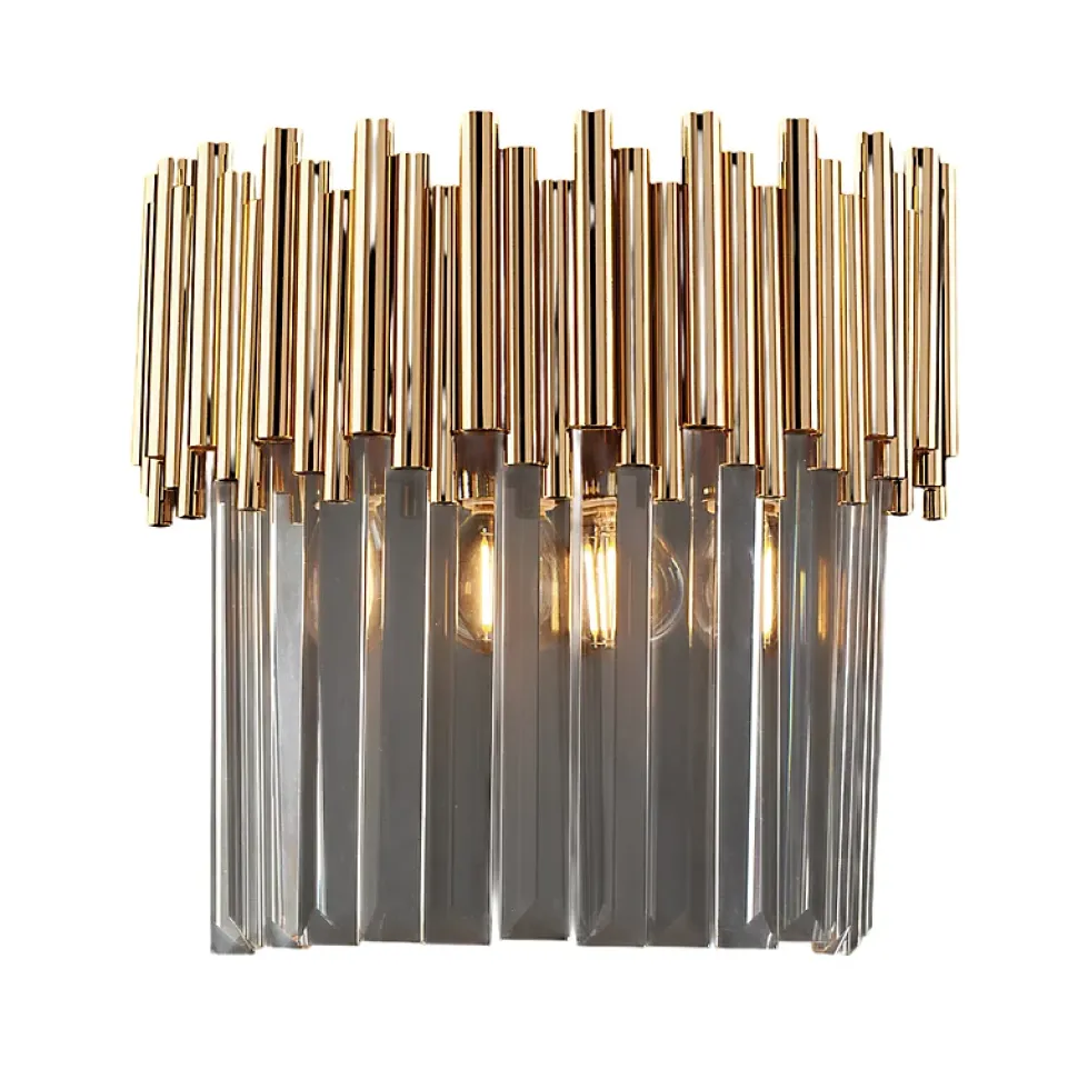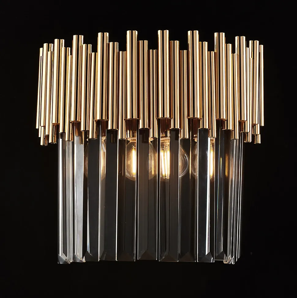 Ravel – Applique en fer doré et strass, 2 lumièresMesures du produit : H.26 – L.28 – P.14Nombre d’ampoules : 2xE14Puissance : 42 watts maximumFinition : Or poliCe produit est fabriqué artisanalement. De légères imperfections visuelles sont considérées comme des caractéristiques naturelles du travail manuel