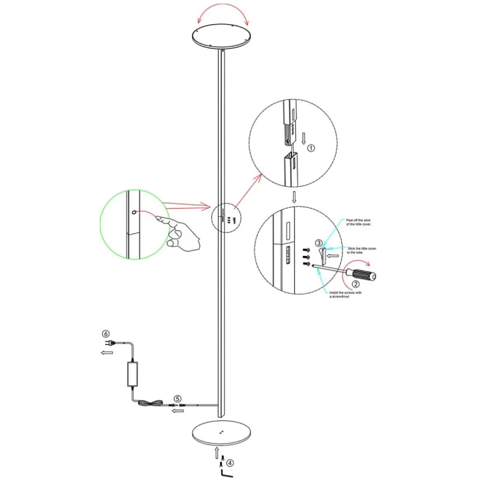 Lampadaire LED moderne et réglable de 35 watts avec un flux lumineux de 3500 lumens (CCT 3000K, 4000K, 5000K, 6000K).Idéal pour les pièces telles que les salons, les espaces de détente, les studios professionnels, les bureaux ou les cabinets médicaux, son éclairage réglable s’adapte à tous les espaces. Vous pouvez également choisir d’éclairer votre espace avec une lumière directe ou indirecte.La lumière s’allume et s’éteint grâce à un interrupteur tactile.Ce lampadaire LED est doté d’un indice de protection IP20, ce qui le rend adapté à une utilisation en intérieur uniquement.La couleur de la lumière du lampadaire est CCT (3000K, 4000K, 5000K, 6000K) : blanc chaud, naturel et froid.TYPE DE CONNEXION : DIRECTEALIMENTATION : 230 V CAPUISSANCE : 35 WCOULEUR DE LA LUMIÈRE : CCT (3000 K, 4000 K, 5000 K, 6000 K)FLUX LUMINEUX : 3500 lmDIMENSION : H