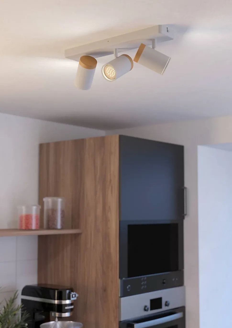 - Pour en profiter pleinement, ajoutez trois ampoules GU10 de votre choix, pour un rendu des couleurs naturel, optez pour du blanc neutre.