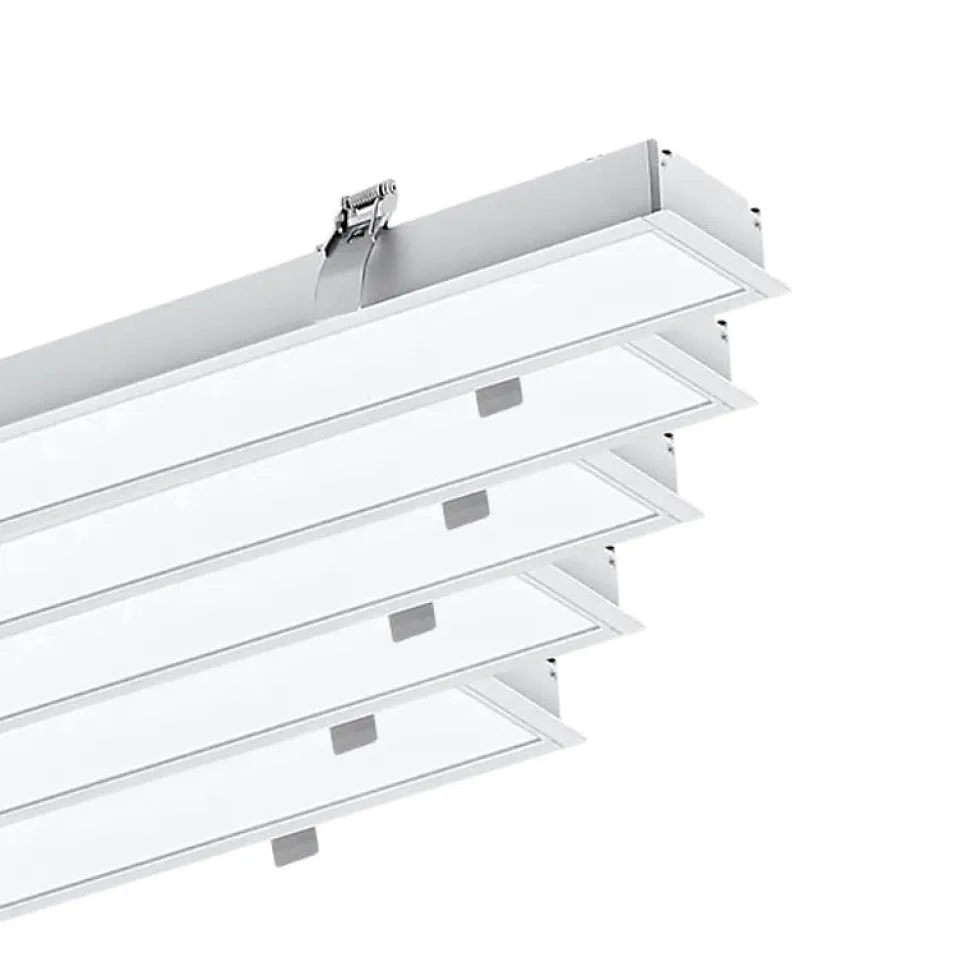 Alliez performance lumineuse et esthétique professionnelle avec ce lot de 5 réglettes LED encastrables 120cm 35W. Idéal pour des projets d’éclairage uniformes dans les bureaux, couloirs, commerces ou zones de travail, ce pack offre une solution fiable et discrète pour les plafonds encastrés.Caractéristiques techniques des réglettes encastrables LED 120cmPuissance unitaire : 35W (soit 175W au total pour le lot).Flux lumineux par réglette : 3500 lm, soit 17 500 lm cumulés.Efficacité lumineuse : 100 lm/W.Angle d’éclairage : 120°, lumière homogène et sans zones d’ombre.Dimensions unitaire : 120 x 7,5 x 3,5 cm.Installation : à encastrer, non orientable.Indice de protection : IP20, usage intérieur.Rendu des couleurs : IRC Ra ≥ 80.Classe énergétique : F.Tension : 220-240V AC / fréquence : 50-60Hz.Matériau : PVC.Finition : blanche.Durée de vie : ~30 000 heures.Température de fonctionnement : -30°C à +50°C.Certification : CE & RoHS.Garantie : 2 ans.Conditionnement : 5 réglettes + visserie de fixation incluse.Les points forts du pack de réglettes encastrables LED 35WCe lot de 5 réglettes LED encastrables est pensé pour simplifier vos installations multiples, tout en garantissant une lumière puissante et professionnelle. Leur conception fine et encastrable s’intègre parfaitement au