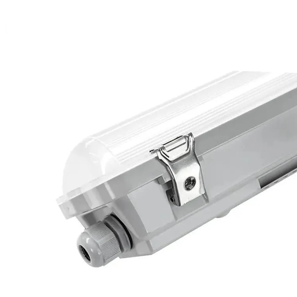 Réglette étanche 150 cm IP65 pour 1 tube LED T8 (boîtier vide) : le support de relamping idéal pour locaux techniques/ateliers, avec câblage unilatéral sécurisé (tubes compatibles) et une pose en saillie rapide sur réseau 220-240V.Confort visuel & homogénéité avec la réglette étanche 150 cm (diffusion 180° via tube T8)Cette réglette IP65 150 cm pour tube LED T8 vous laisse choisir le tube 150 cm (puissance / Kelvin / flux) selon l’usage, tout en garantissant une diffusion large : l’angle 180° dépend du tube installé, mais la réglette est conçue pour éclairer efficacement de grands volumes (éclairage industriel, circulations, zones de stockage, ateliers). Le rendu IRC >80 est également lié au tube choisi, ce qui facilite une prescription « sur-mesure » sans changer de support.Pose rapide & rénovation express : réglette IP65 150 cm en saillie (boîtier vide)Conçue pour la pose en saillie, la réglette LED étanche 157 x 7 x 6 cm se fixe directement au mur/plafond (supports fournis), puis se raccorde au secteur 220-240V AC. Son gros avantage chantier : l’alimentation unilatérale (raccordement d’un seul côté) accélère le câblage et réduit les erreurs de branchement lors des relampings en série, notamment en environnements industriels.Performance & ROI : support T8 150 cm « au choix » pour moderniser sans surcoûtEn choisissant un boîtier vide + tube LED T8 150 cm adapté, vous standardisez la mécanique (même support) et vous pilotez le budget via le tube (flux, conso, température de couleur). La fiche indique un ordre de grandeur d’éclairage de ~12 à 15 m² selon la puissance du tube installé, ce qui aide au chiffrage rapide en rénovation de garages, caves, ateliers, couloirs techniques ou zones de stockage.Durabilité & normes : réglette étanche IP65 (PVC) + sécurité 220-240V (maintenance réduite)<