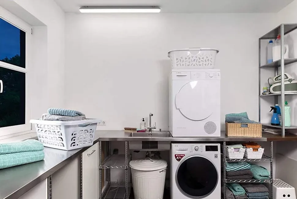 Plafonnier étanche à utiliser avec 1 tube LED, format T8 de 120 cm; culot G13. Les tubes LED (non fournis) doivent être alimentés d’un seul côté. Base et clips en ABS; diffuseur en polycarbonate. Le tube LED peut être inséré de chaque côté. Puissance max. de chaque tube: 18W. Installable à l’extérieur et à l’intérieur; IP65: étanche aux éclaboussures; parfait pour garages, parkings, caves, plafonds, garages, locaux techniques.Température d’installation recommandée: -20°C à +40°C.
