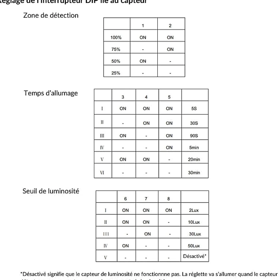 - [Paramètres Personnalisables] Seuil de luminosité, zone de détection et durée d’allumage ajustables pour une utilisation flexible.