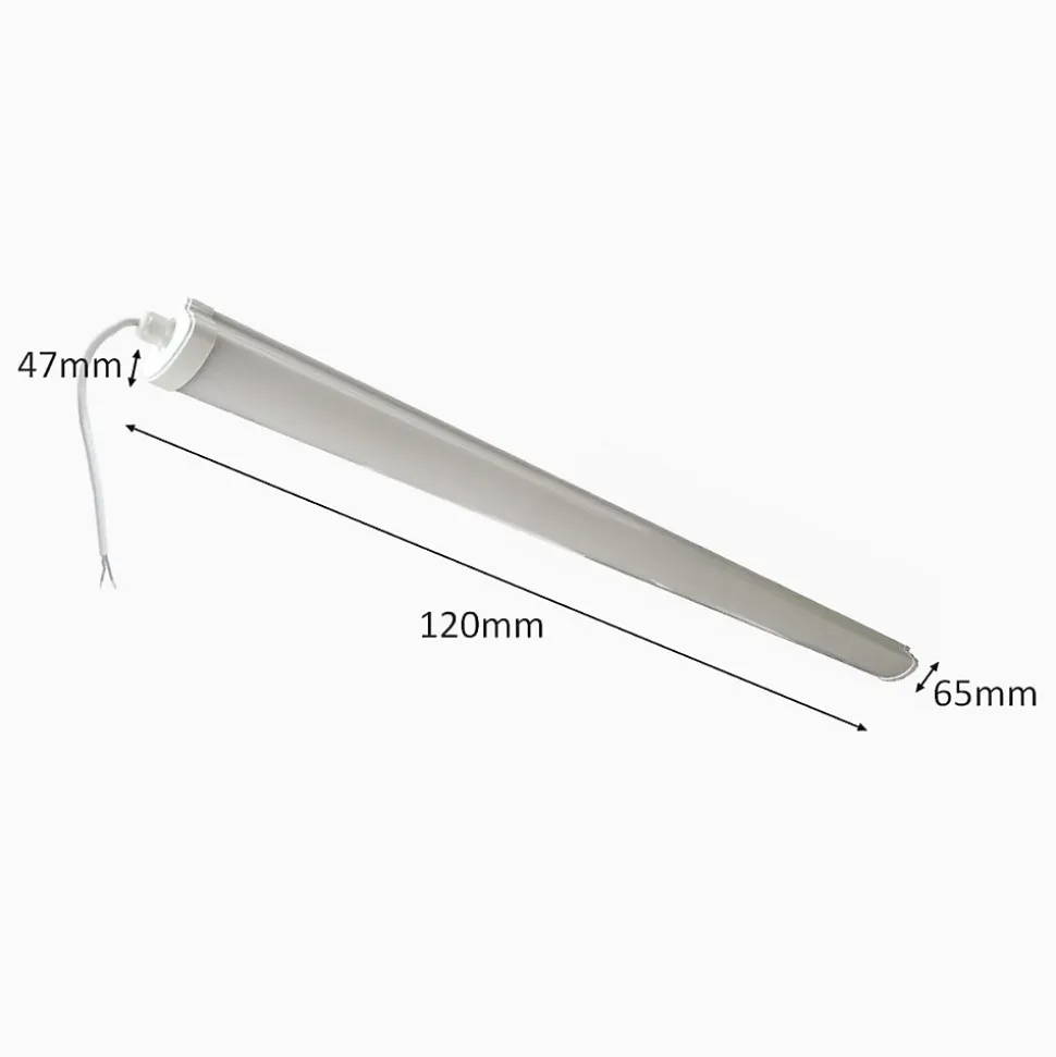 [Réglette LED étanche 120cm 36W IP65 (Pack de 10)]Réglette LED étanche 120cm 36W IP65, parfaite pour un éclairage dans différents espaces tels que les garages, sous-sols, terrasses, entrepôts, parkings, et tunnels.[Design] Conçue avec une résistance à la poussière et aux projections d’eau grâce à son IP65, pour un éclairage homogène et non éblouissant.[Efficacité lumineuse] Atteint une efficacité lumineuse de 3600 lumens, soit 100lm/W, pour remplacer facilement vos anciennes réglettes fluorescentes étanches.[Installation facile] Transformateur et support de fixation inclus pour une installation facile et directe à 220V.[Avertissement] Attention de ne pas retirer le cache à l’extrémité de la réglette LED.- [Réglette LED étanche 120cm 36W IP65 (Pack de 10)]Réglette LED étanche 120cm 36W IP65, parfaite pour un éclairage dans différents espaces tels que les garages, sous-sols, terrasses, entrepôts, parkings, et tunnels.
