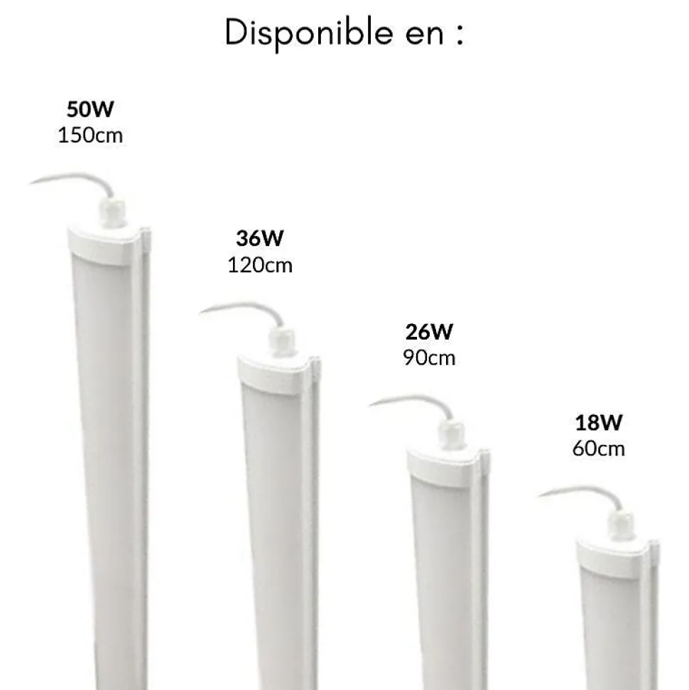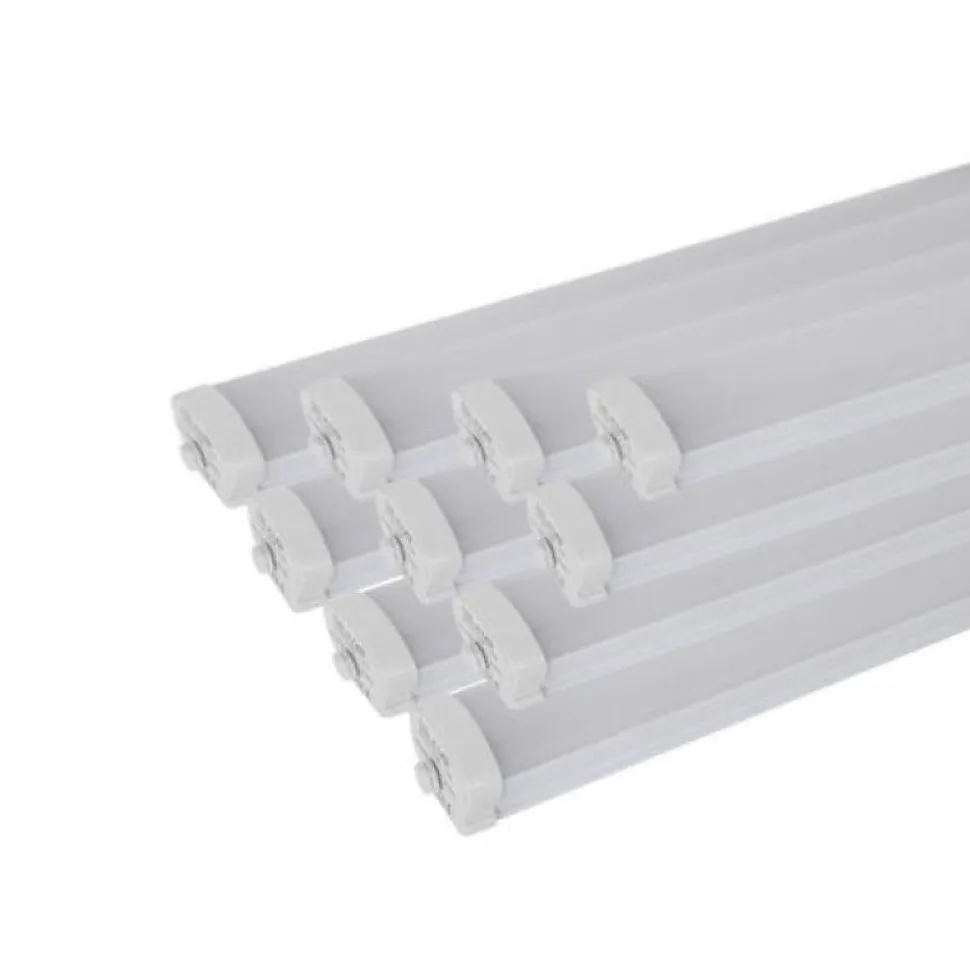 - [Pack de 10 Réglettes LED étanche 150cm 50W IP65] Le Pack de 10 Réglettes LED étanche 150cm 50W IP65 offre un rendu optimal sans chauffe grâce à sa technologie LED. Elles ne scintillent pas à l’allumage et le couvercle opaque permet de ne pas s’éblouir. De plus, la couleur d’éclairage blanche neutre, fait de ce produit l’éclairage idéal au quotidien.