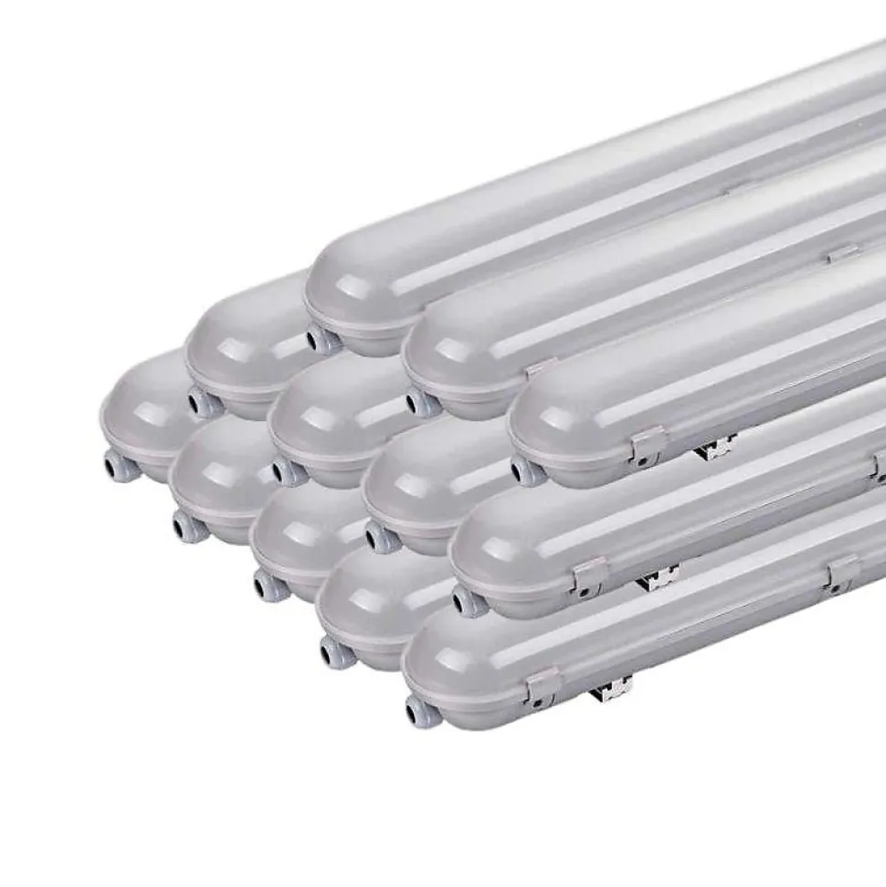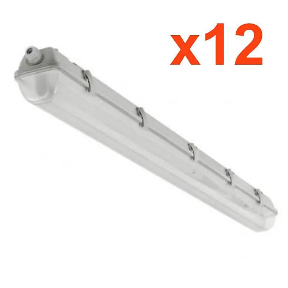 - Cette Réglette LED étanche pour Tube LED T8 120cm IP65 (Pack de 12) est idéale pour un éclairage industriel puissant et efficace pour votre espace de travail, cave, sous-sol et parking. Complétez votre achat en achetant un tube néon LED avec cette réglette.