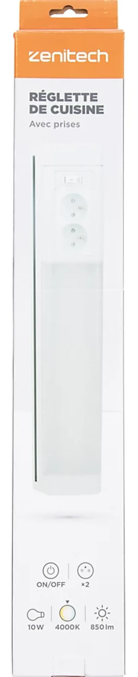 Réglette sous meuble avec prises LED intégrée blanc neutre IP20 850lm 3680W L.8xl.8,5xH.50cm Zenitech