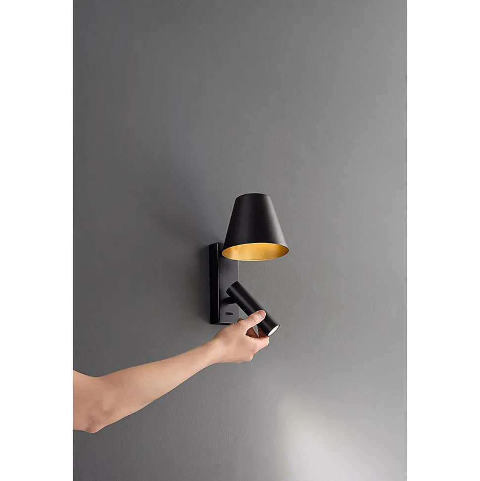 Le cadre en métal thermolaqué et aluminium, présenté ici en finition blanc mat, est complété par un diffuseur conique associé à un spot orientable à 340° doté d’une grille nid d’abeille anti-éblouissement.La lumière peut être dirigée directement vers l’abat-jour, créant un éclairage doux et confortable, idéal pour les chambres, les coins lecture ou les espaces détente. Le module LED 6W intégré génère une lumière chaude de 3 000 K avec un IRC ≥ 90, garantissant un excellent rendu des couleurs et une luminosité réelle de 480 lumens.L’interrupteur marche/arrêt est idéalement situé sur la base de la lampe, pour une utilisation pratique et immédiate. Avec une durée de vie de 40 000 heures et un design minimaliste mais soigné, REVERSO est la solution idéale pour les espaces modernes où la lumière est également un élément décoratif.Puissance LED : 6 WTempérature de couleur : 3 000 KFlux lumineux : 480 lm (produit)IRC ≥ 90 | LED avec une durée de vie de 40 000 heuresCorps lumineux orientable à 340°Spot avec grille alvéolée anti-éblouissanteInterrupteur marche/arrêt intégré au piedMatériaux : Aluminium et métal thermolaquéDimensions de l’applique : P 16 × H 22 cmAbat-jour : Ø 12 × H 10 cmSpot : Ø 3 × L 11 cmClasse I | IP20 | Tension : 220-240 V 50/60 HzParfaite comme lampe de lecture murale ou de chevet, REVERSO allie une technologie d’éclairage de précision à une esthétique épurée, pour des espaces où forme et fonction cohabitent harmonieusement